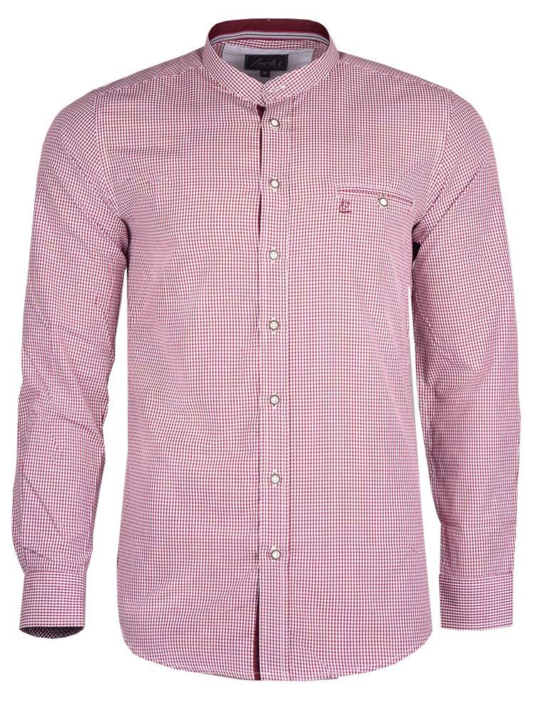 Trachtenhemd Merlin Stehkragen rot Das moderne Herrenhemd ist rot und besticht durch das kleine Karomuster. Die schönen Details, wie die zweifarbige Knopfleiste und die schöne Brusttasche verleihen dem Herrenhemd den besonderen Look und wirken sehr hochwertig. Das Trachtenhemd ist die perfekte Wahl, wenn Sie auf der Suche nach einem zeitlosen Klassiker sind.