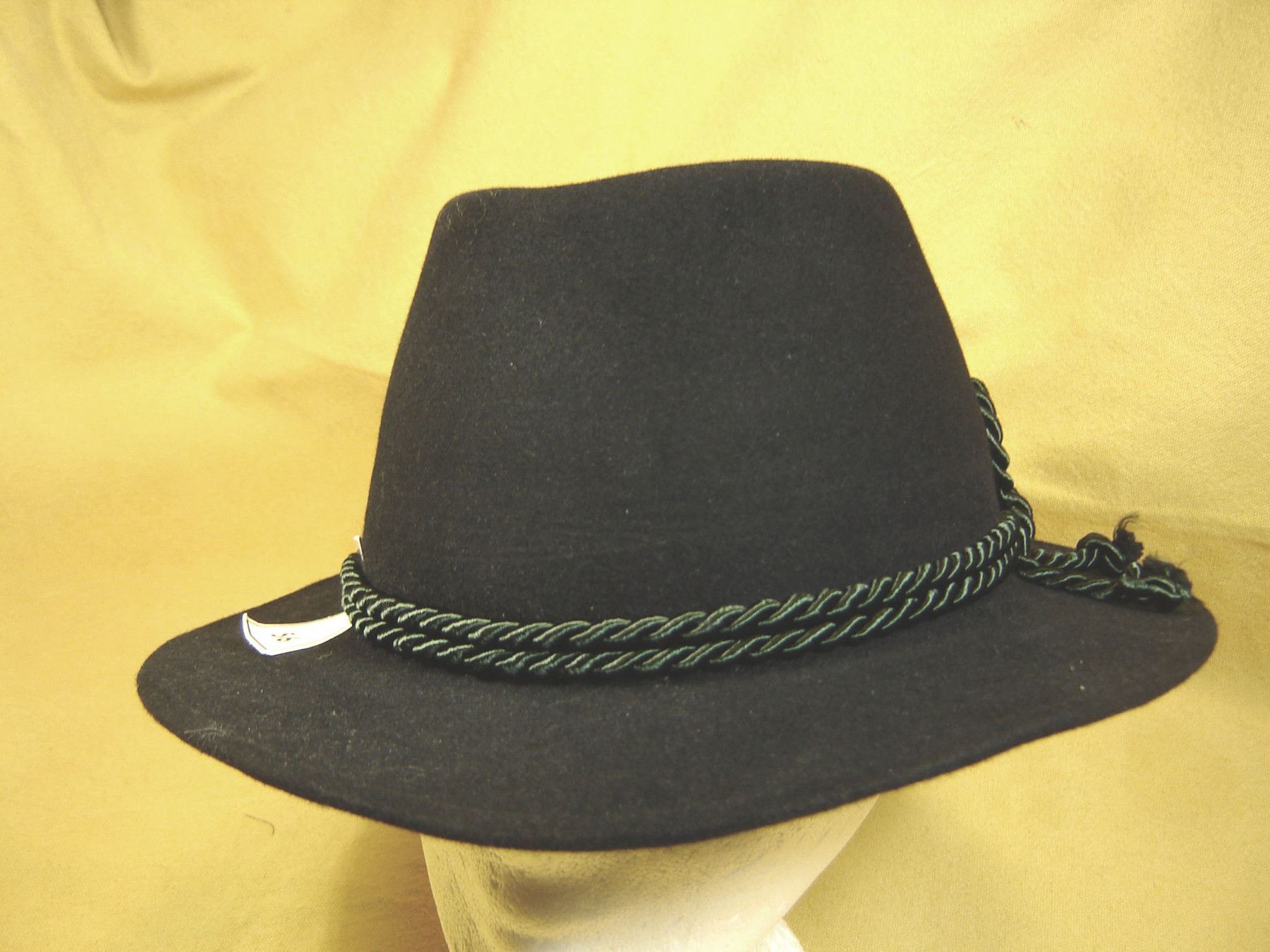Trachtenhut hohe Trachtenform Haarfilz schwarz mit Kordel grün