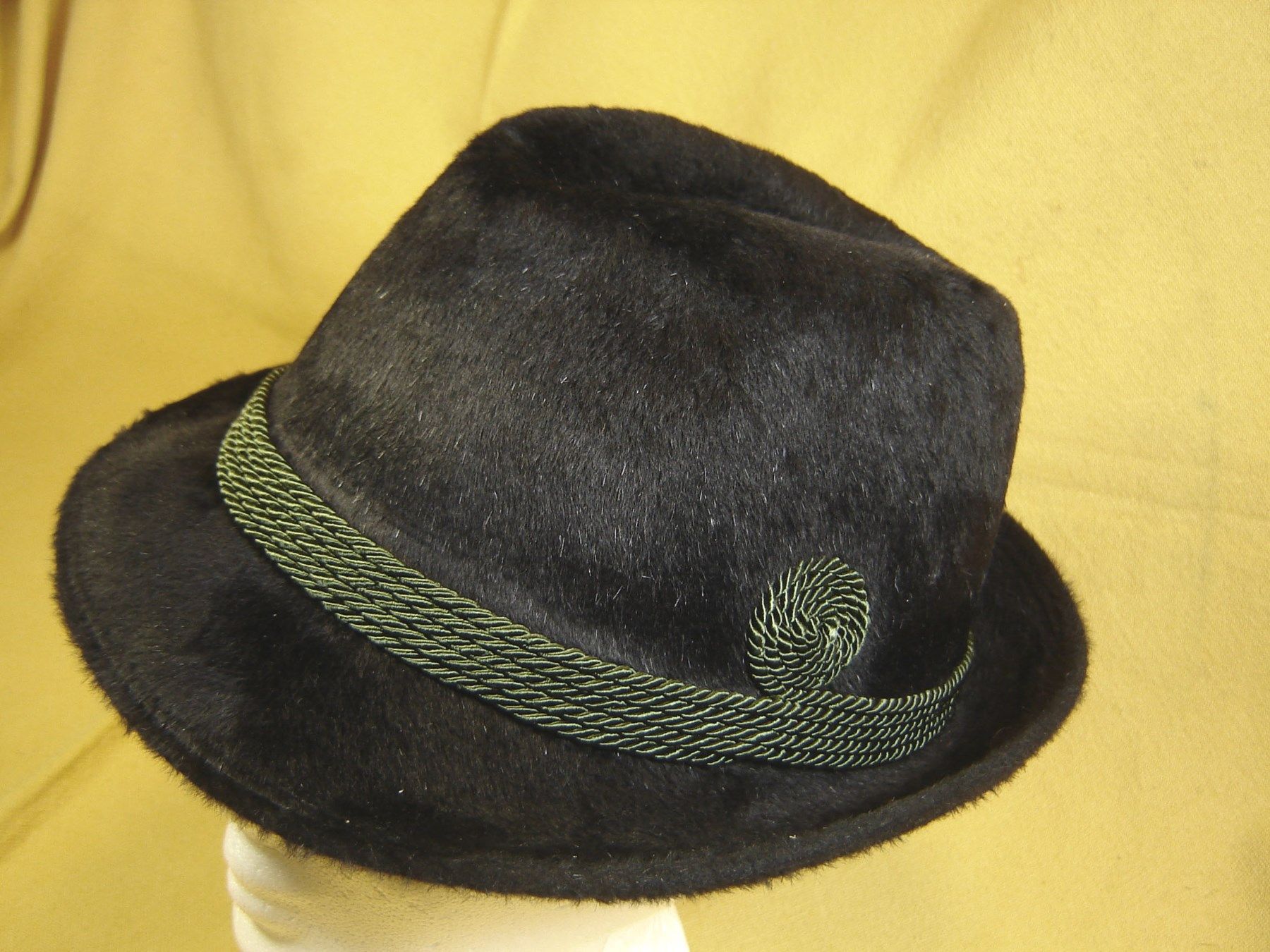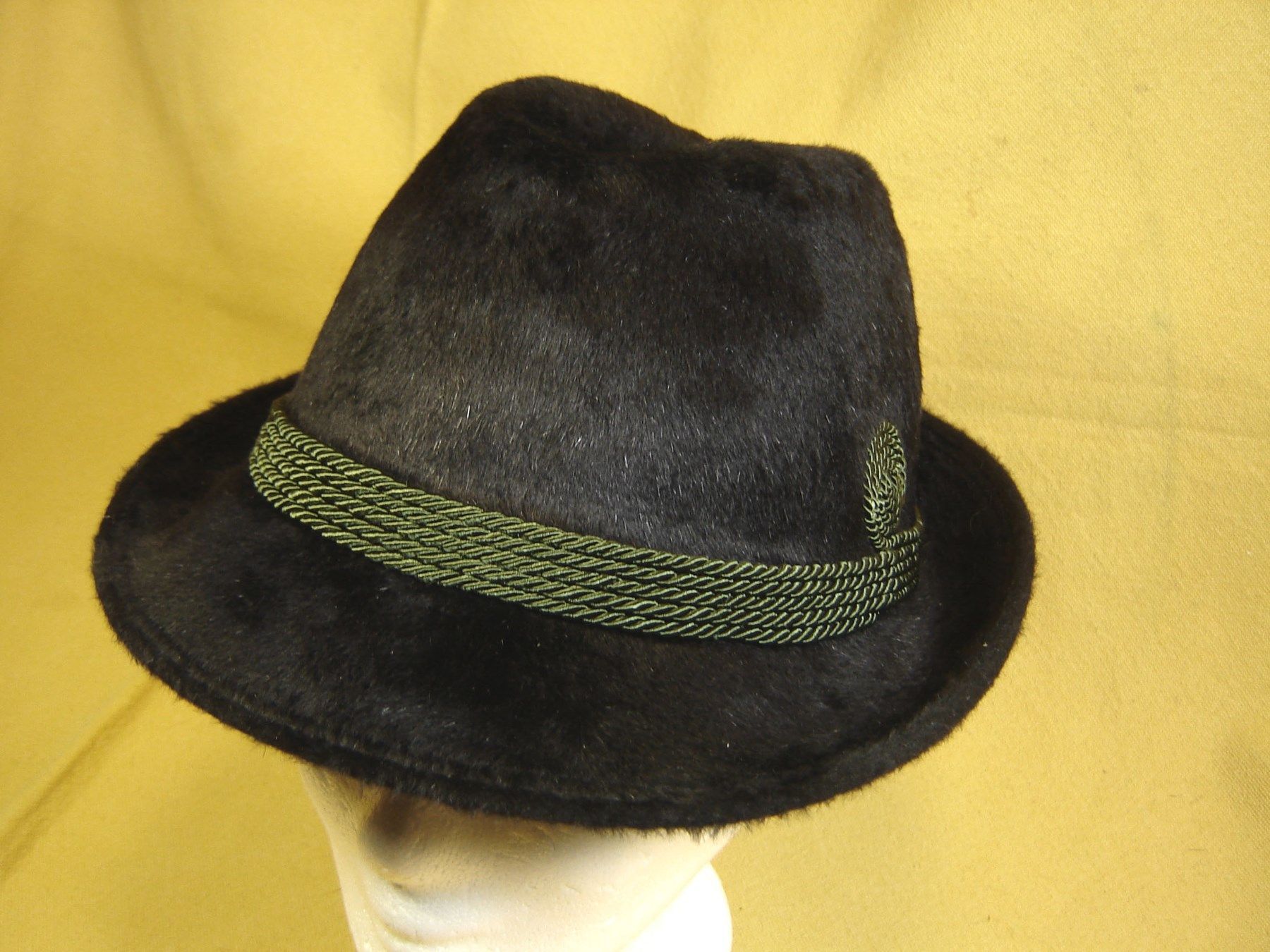 Trachtenhut klassische Form Haar Velour schwarz Herrenhut Kordel grün 56-61 cm