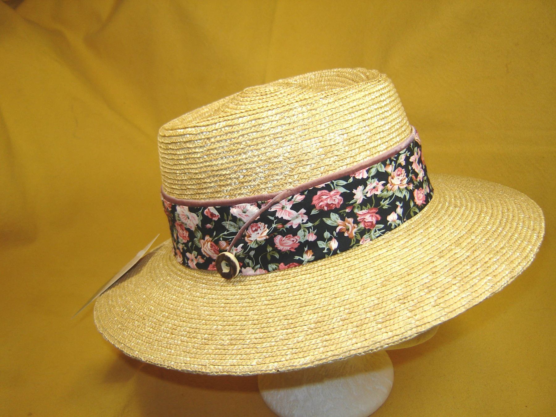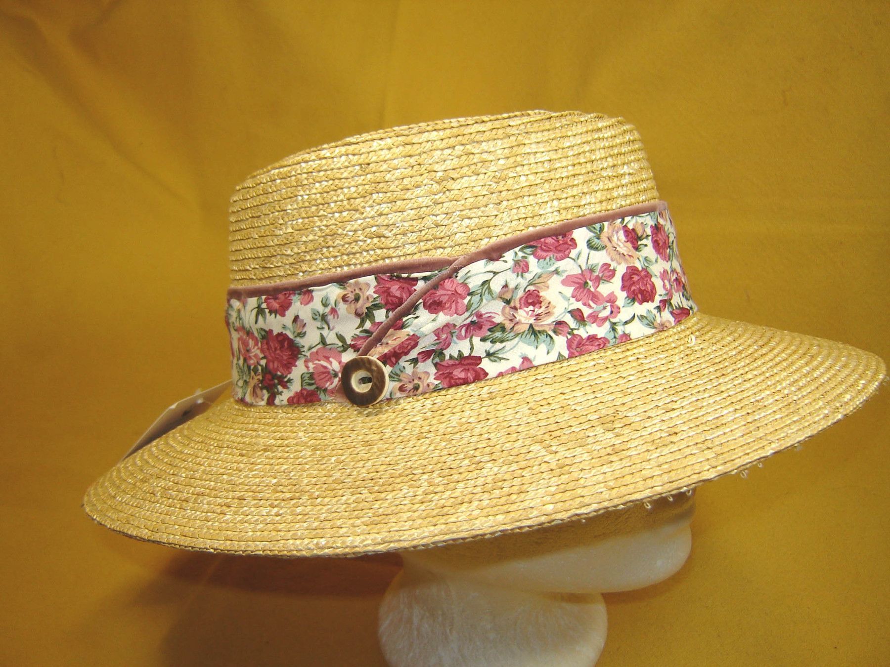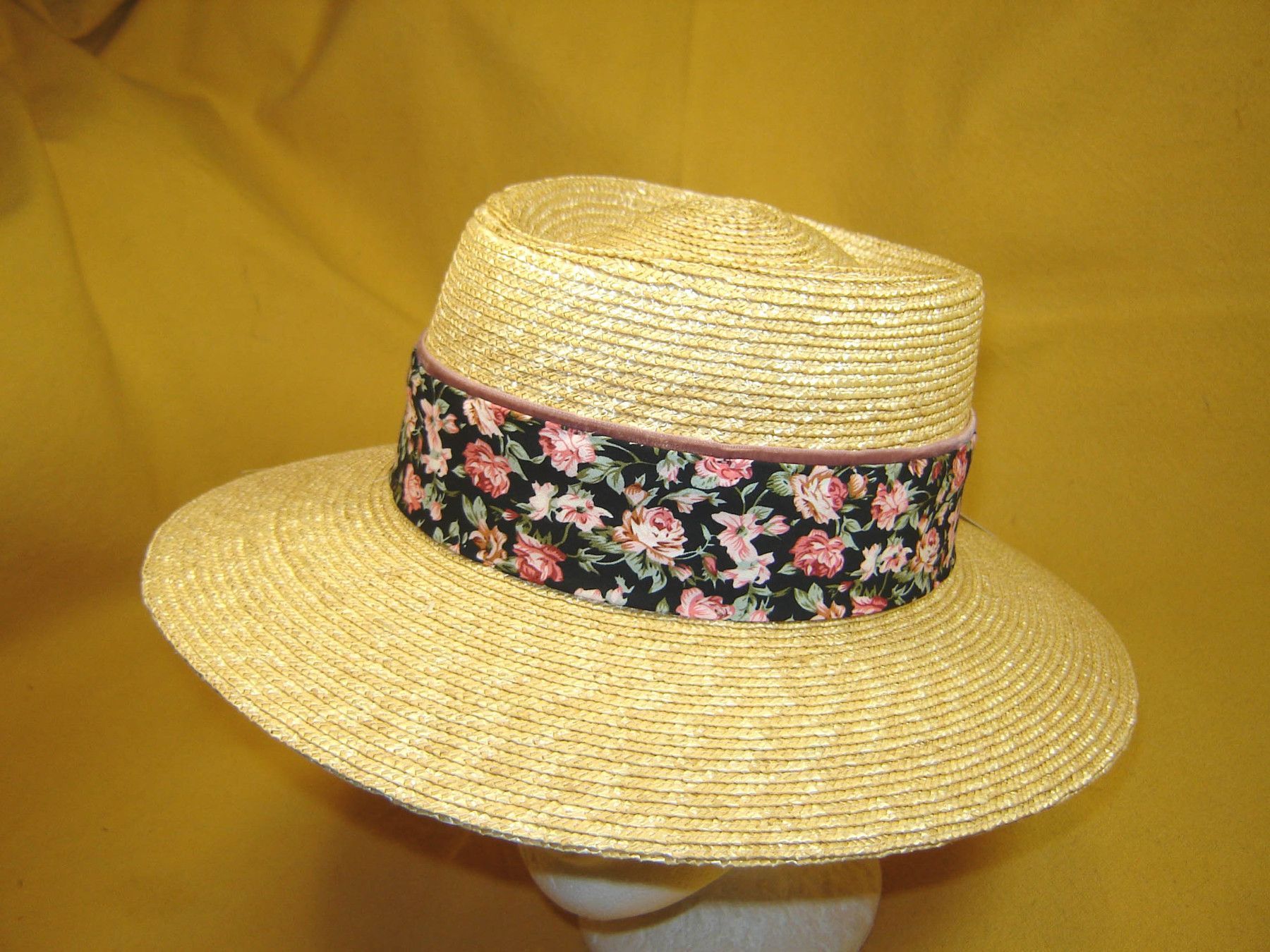 . wunderschöner Strohhut zum Dirndl , Trachten Strohhut aus Strohborte genäht mit weitem Rand , ca 8,5 cm der Kopf ist ca 8 cm hoch dekoriert mit einem geblümten Bauwollband auf Samt wahlweise hell oder dunkel mit Trachtenknopf da der Hut ist aus schmaler Naturstrohborte genäht ist , ist der Hut seh