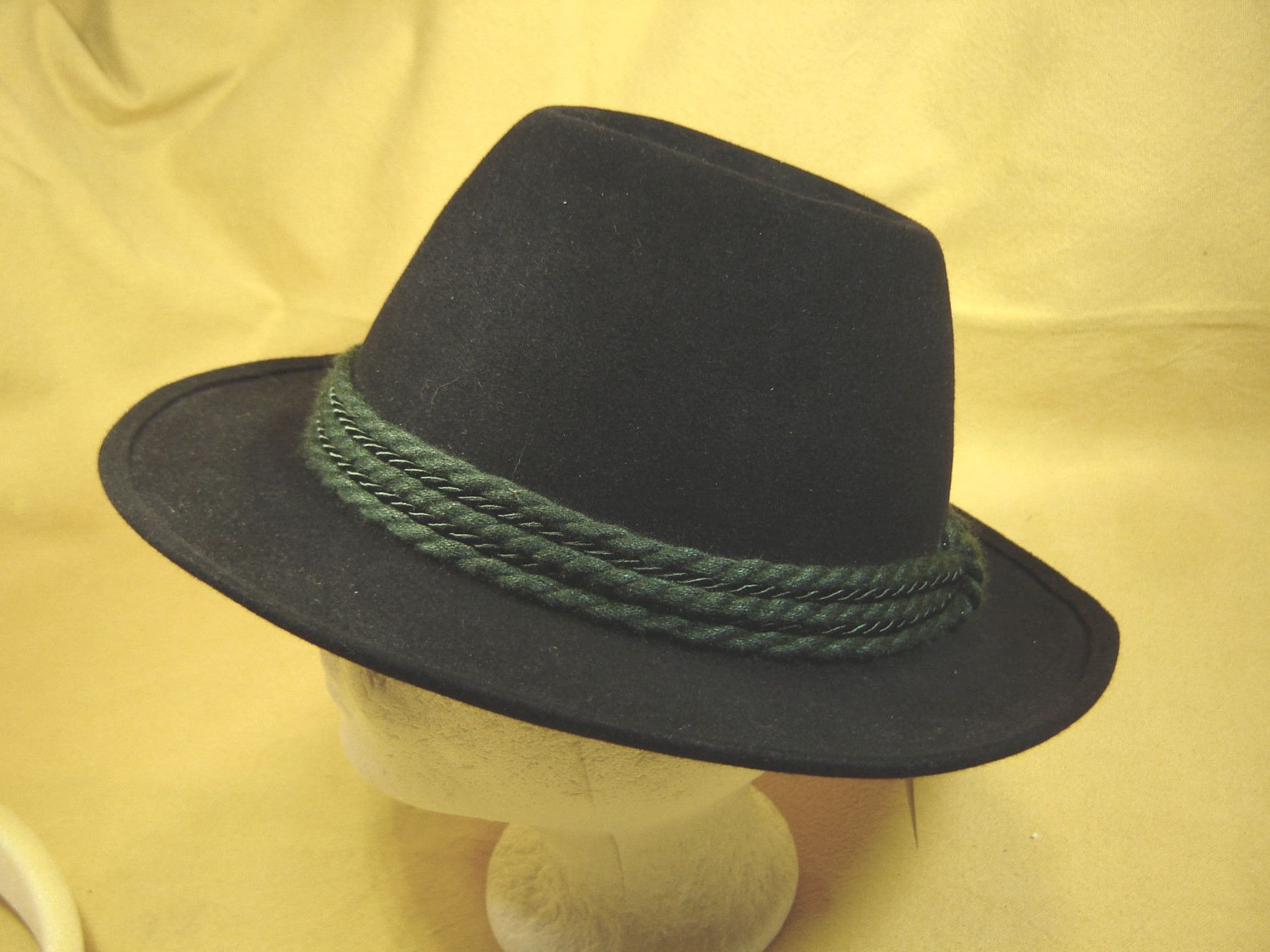 Trachtenhut traditionelle Trachtenform Haarfilz schwarz mit Kordel grün