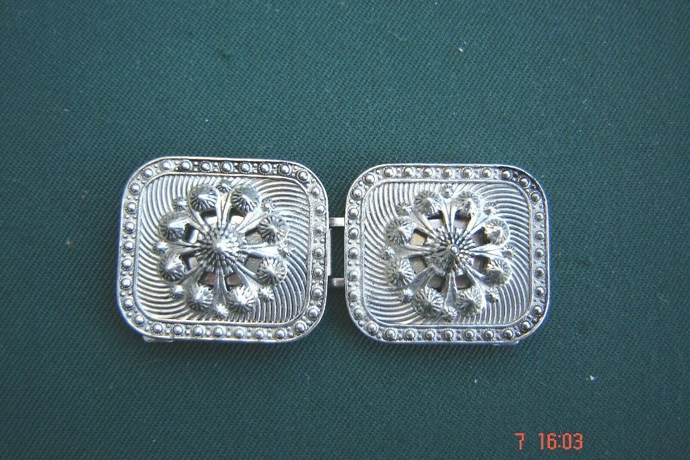 . schön verzierte Schließe für Dirndlschürze oder Trachtengürtel wunderschöne Schließe mit floralem Motiv sehr schön ausgearbeitet für feste Stoffe geeignet Höhe ca 3 cm , Breite zusammen ca 7,3cm die Schürzenschließe wird an 2 Stegen angenäht , sie haben eine Breite von ca 3,2cm , das Innenmaß ist