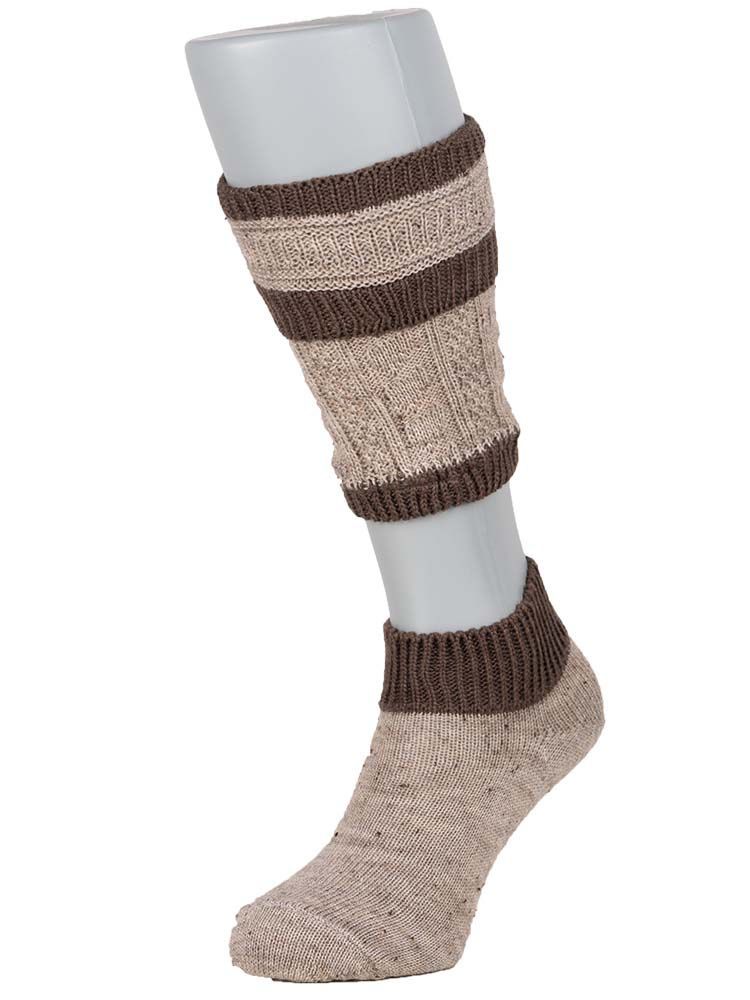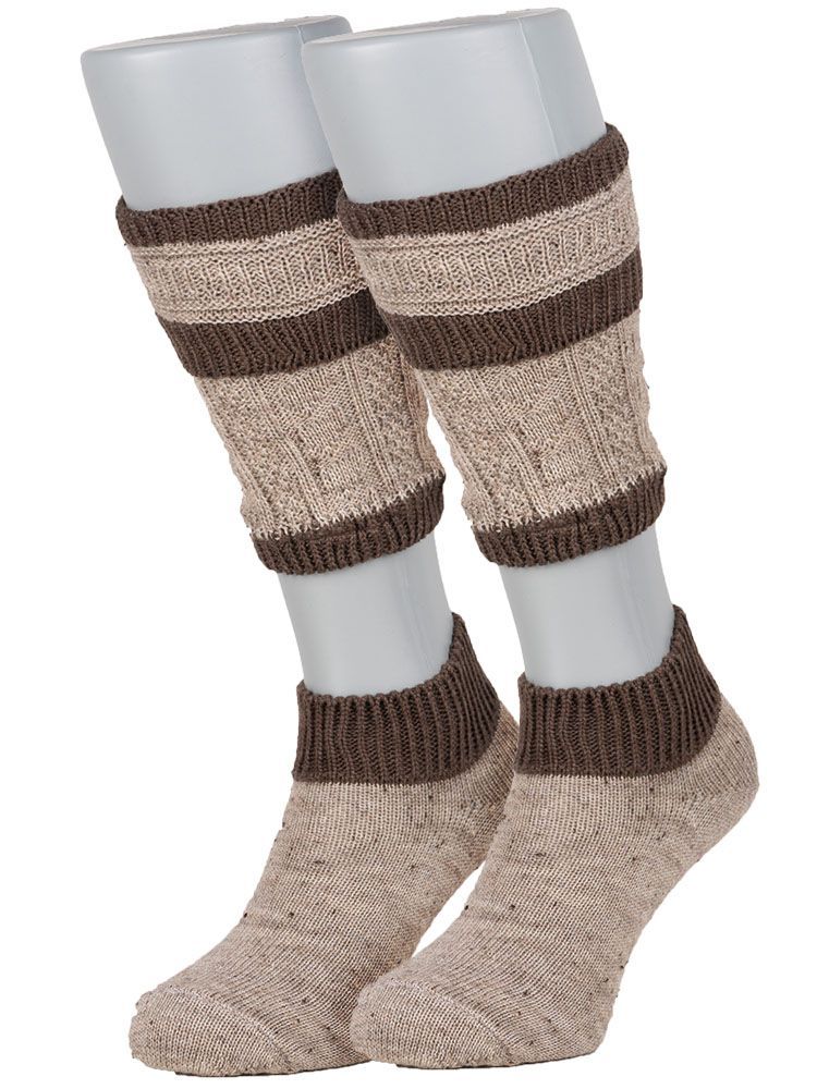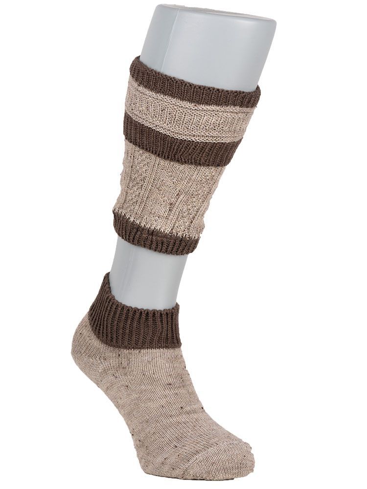 Trachtenstrümpfe Loferl braun-nuss Die schicken Trachtenstrümpfe sehen durch die schlichte Farbkombination besonders modern aus. Die klassischen Loferl bestehen aus den Socken und den passenden Wadenteilen. Das angenehme Mischgewebe ´hält durch den hohen Wolle-Anteil die Füße und Beine optimal warm. Die Strümpfe passen sehr gut zu Trachtenschuhen und Lederhosen.