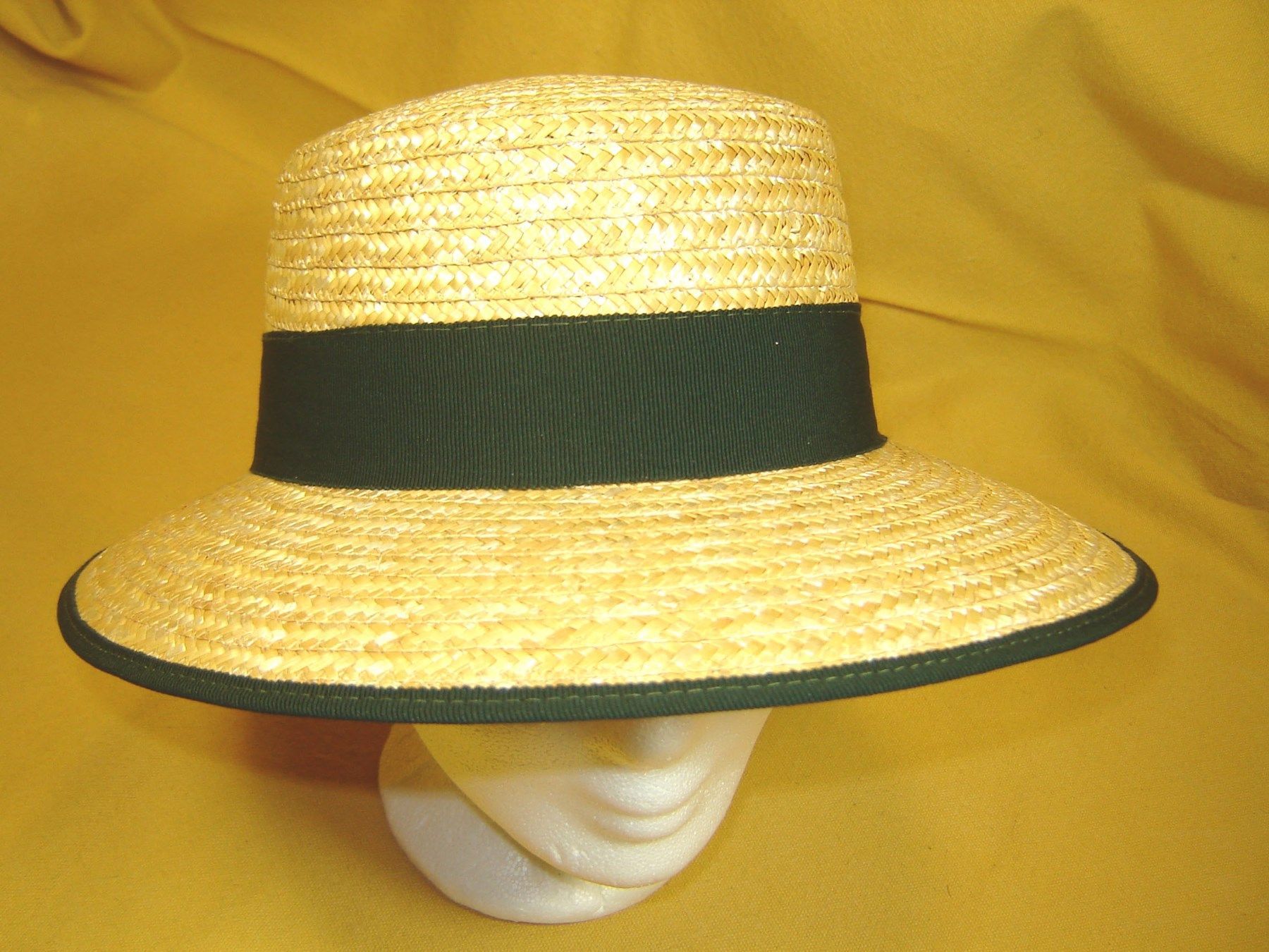 Trachtenstrohhut Dirndlhut Schute Trachtenhut Naturstroh mit Band tannengrün