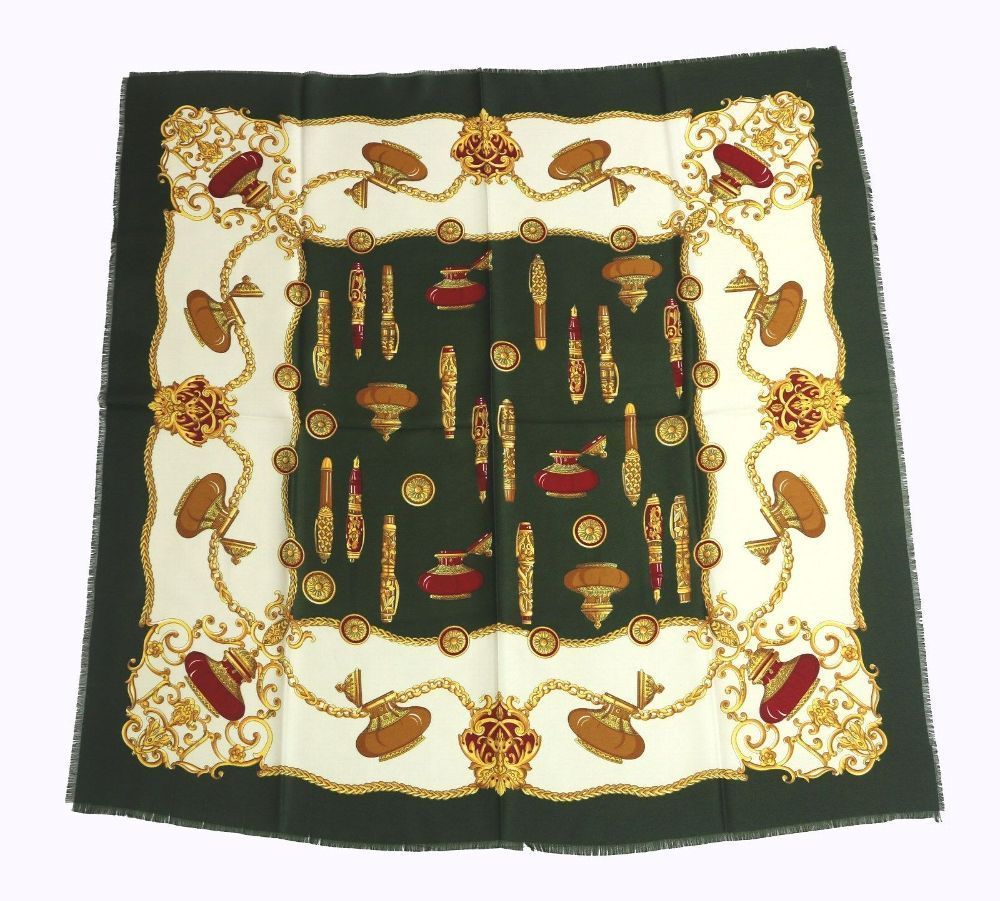 . sehr schönes Trachtentuch , Manteltuch , Schultertuch , Kopftuch Jagdtuch , Herbsttuch weiche Qualität aus softigem Polylana 100% Polyester mit Wollhaptik in Grundfarbe beige mit oliv goldgelb und bordo mit wunderschönem Muster Ornamente Füller und Tintenfäßchen schöne weiche Qualität und vor alle