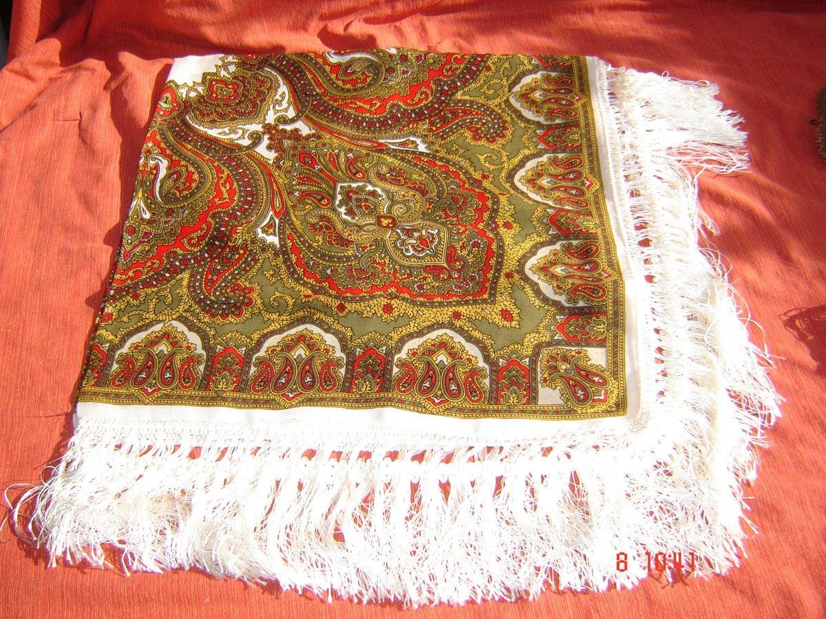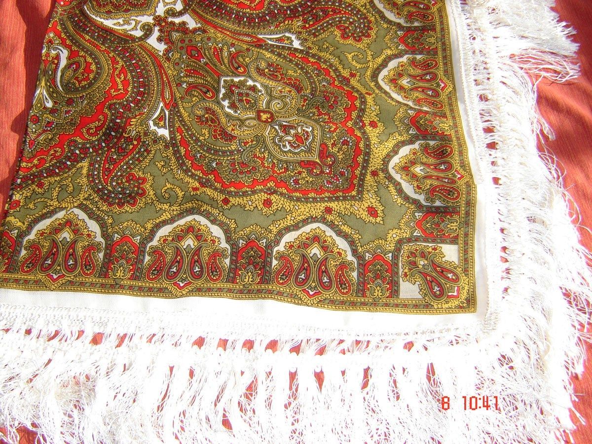 Trachtentuch Wolle Paisley oliv rot weiß wunderschönes Fransentuch Manteltuch Z p