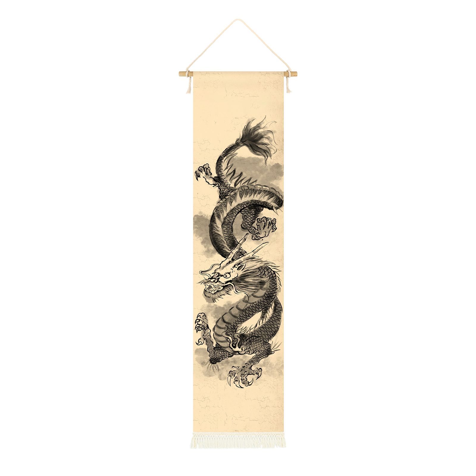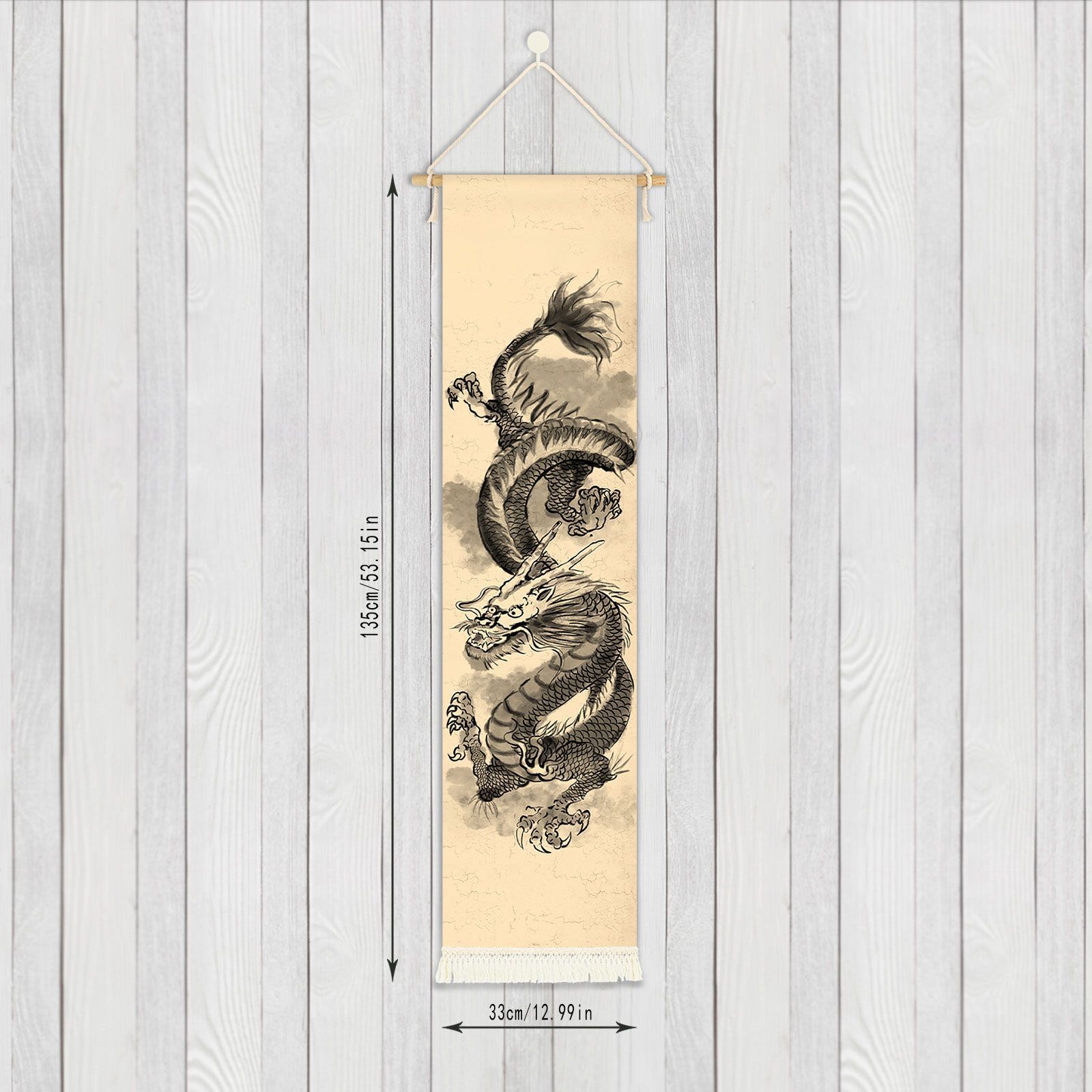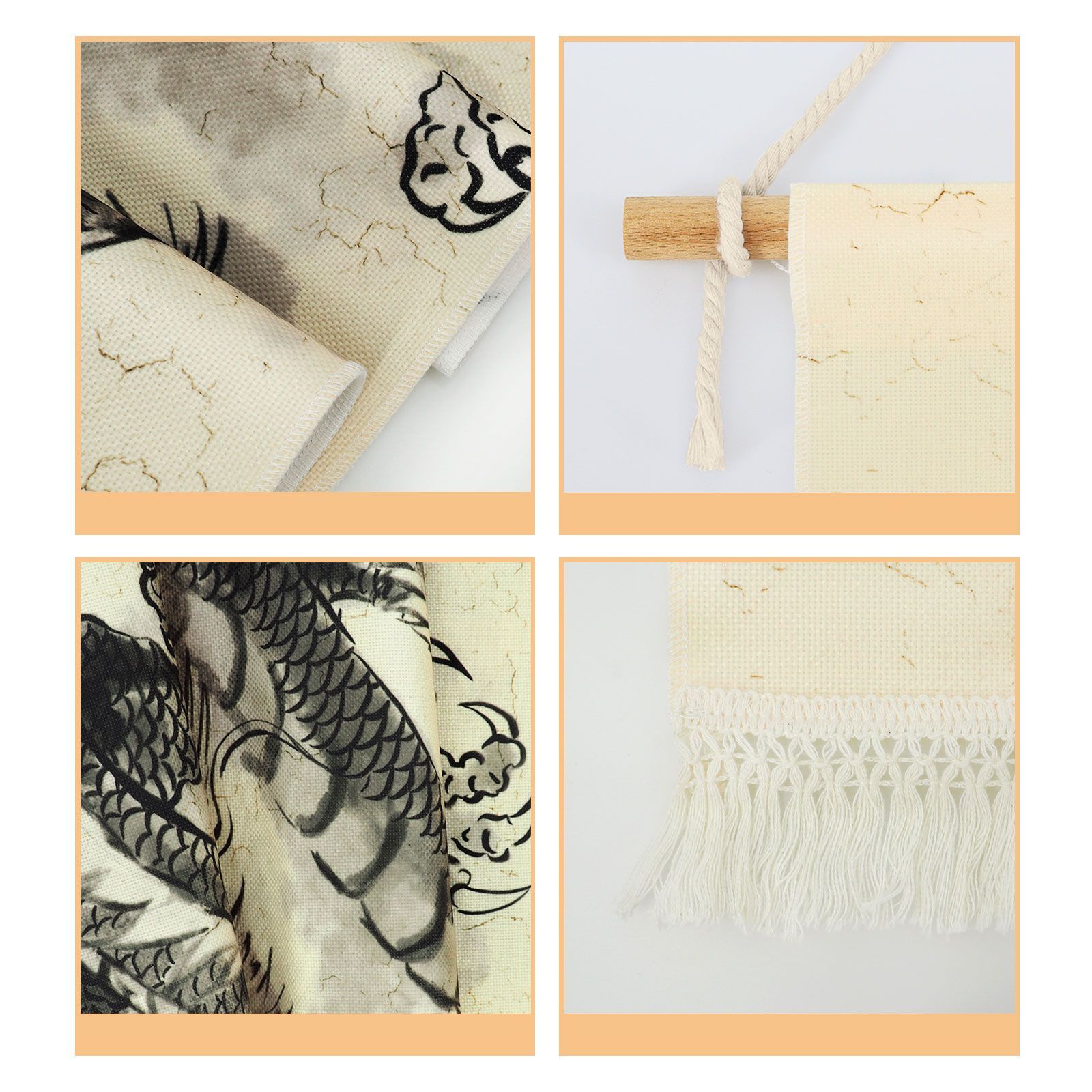 Traditionell Asiatisches Drachen Rollbild, Wandbild Chinesische Malerei 135x33cm