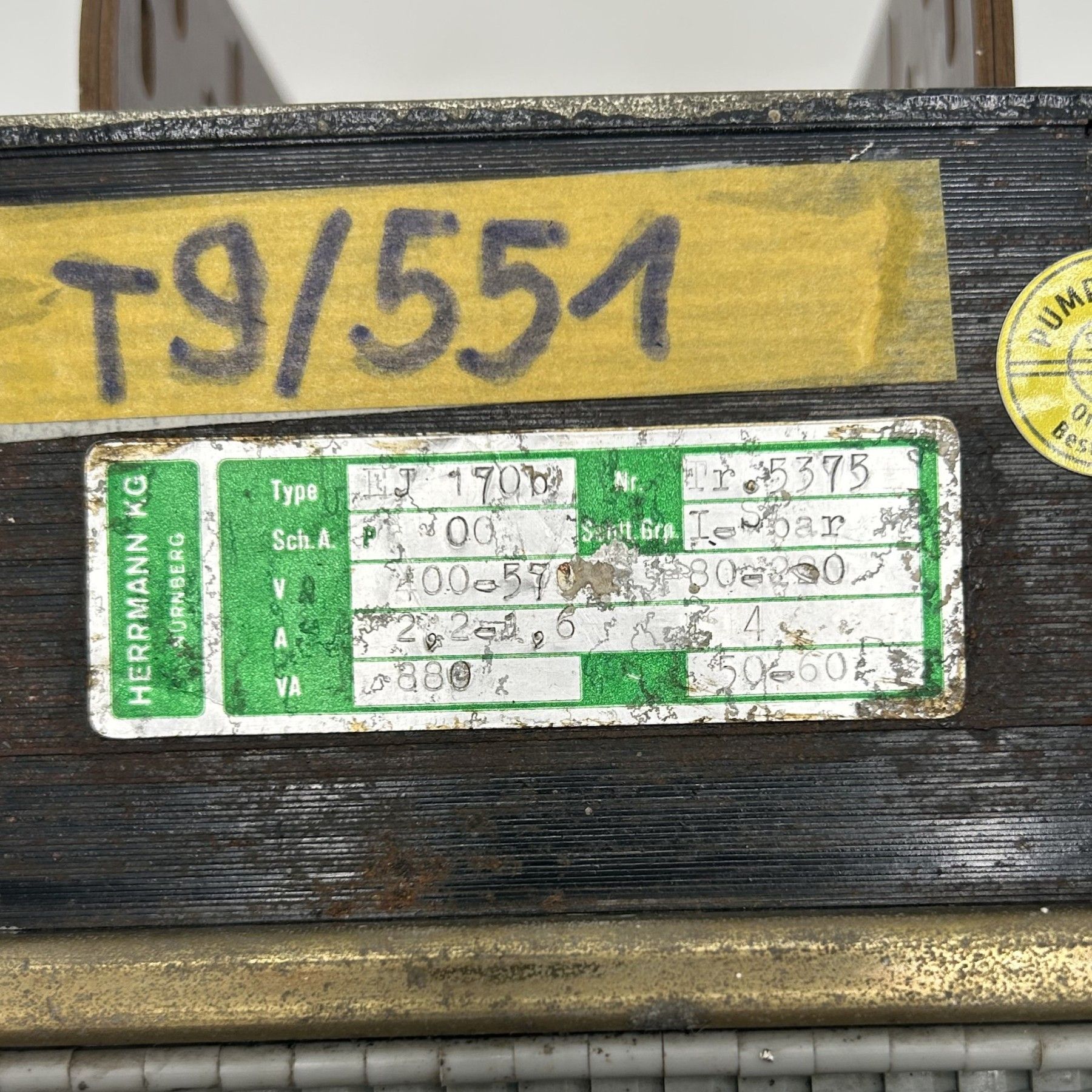 Trafo Hermann EJ 170 b , 81-570 V pri. 400, 415, 440, 460, 480, 500, 550, 570 V sek. 60, 80, 100, 120, 140, 160, 180, 209, 220, 231 (2,2 - 1,6 A) 880 VA Abmessungen LXBxH: 145x180x185 Gewicht: 19 kg Sicherheits-, Funktionsprüfung und Isolationsmessung nach VDE durchgeführt Zustand: gebraucht Top Zus... Mehr