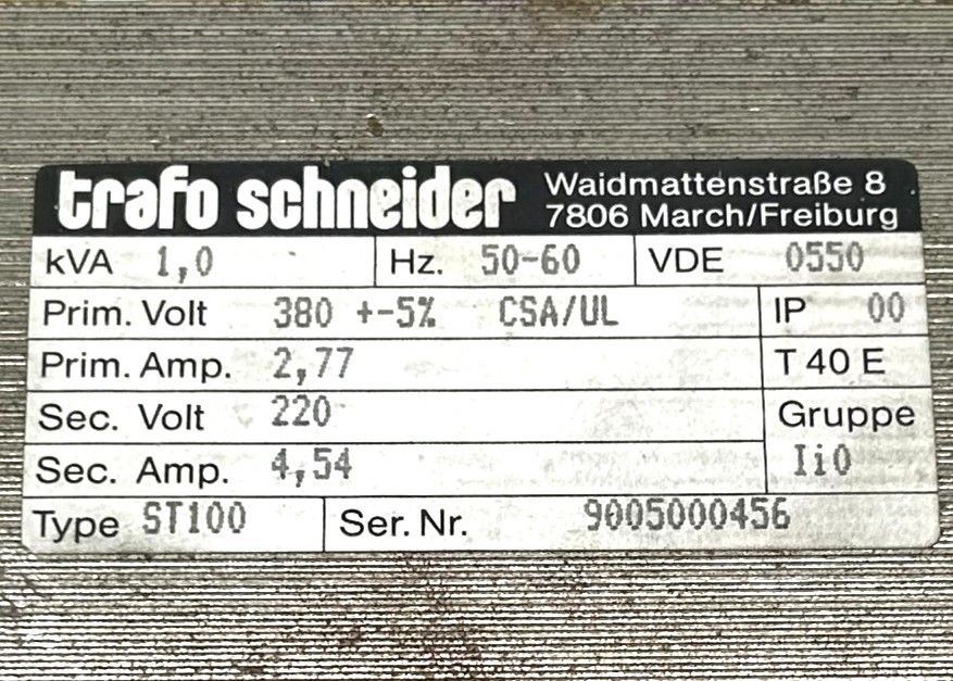 Trafo Schneider Transformator ST100 380 V sec 220 V 1,0 kVA T9/526