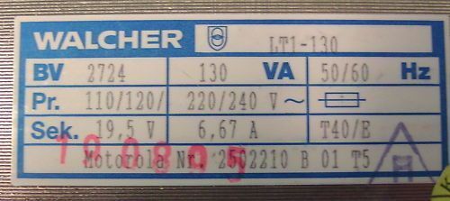Trafo Walcher 110 120 220 240 V sec 19,5 V 130 VA T8/68