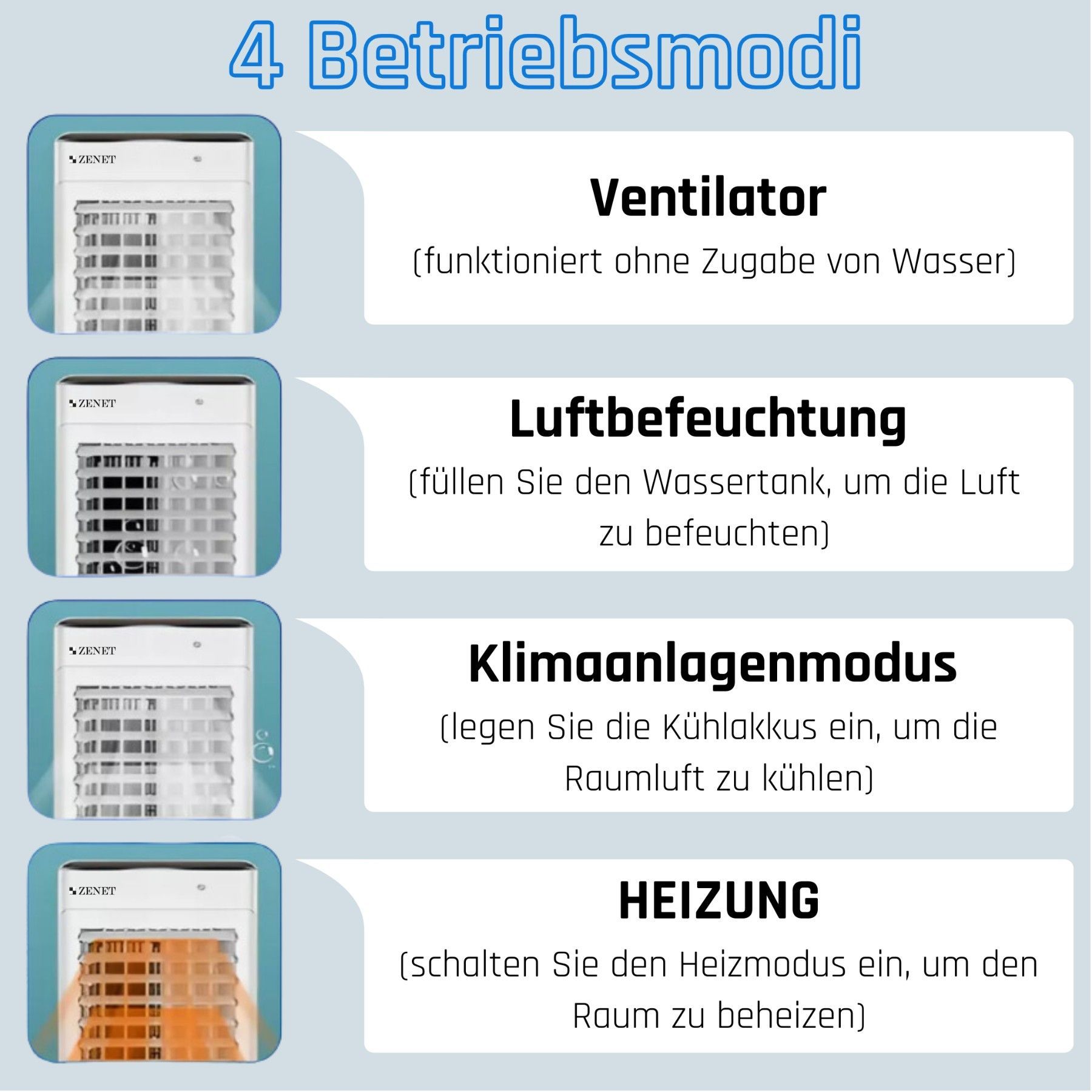 Tragbare Klimaanlage Zenet ZET-480 mit Heiz-, Befeuchtungs- und Luftreinigungsfunktio