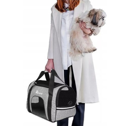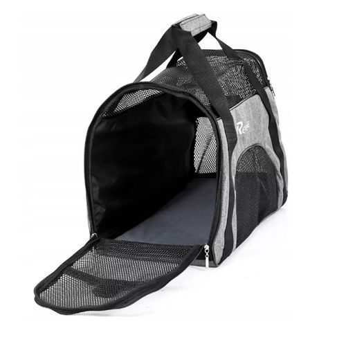 QLS Tragetasche für Katzen Hunde Haustiere 52x25x34 cm bis 10Kg Grau Meshfenster 10966