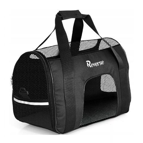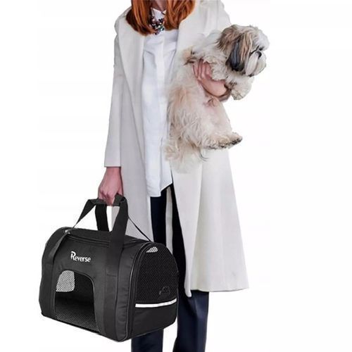 QLS Tragetasche für Katzen Hunde Haustiere 52x25x34 cm bis 10Kg Schwarz Meshfenster 10965