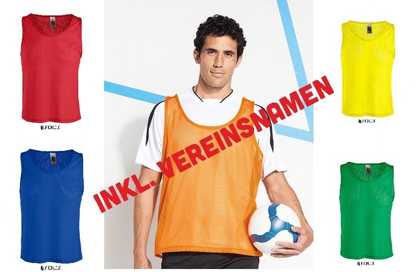 Trainingsleibchen mit Ihrem Vereinsnamen bedruckt ( 10 Stück ) Bitte senden Sie uns nach dem Einkauf eine Mail mit der gewünschten Farbe und Ihres Beflockungswunsches! Größe: XS, M, XL Gerne weitere Bedruckungen auf Anfrage!!! Sie benötigen einen Ausstatter für Ihren Verein , gerne Informieren wir S
