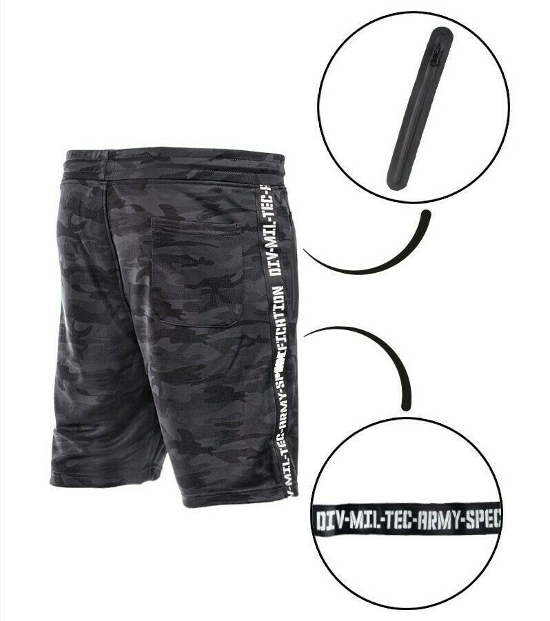 MiL-Tec Trainingsshorts Dark Camo Kurze Sporthose in trendigem Camo Design. Lässige, bequeme Trainingshose mit elastischem Bund & Kordelzug. Die Sporthose hat 2 Reißverschlusstaschen vorne & eine Gesäßtasche. Version: Dark Camo, Material: 100% Polyester. Bitte wählen Sie die gewünschte Größe