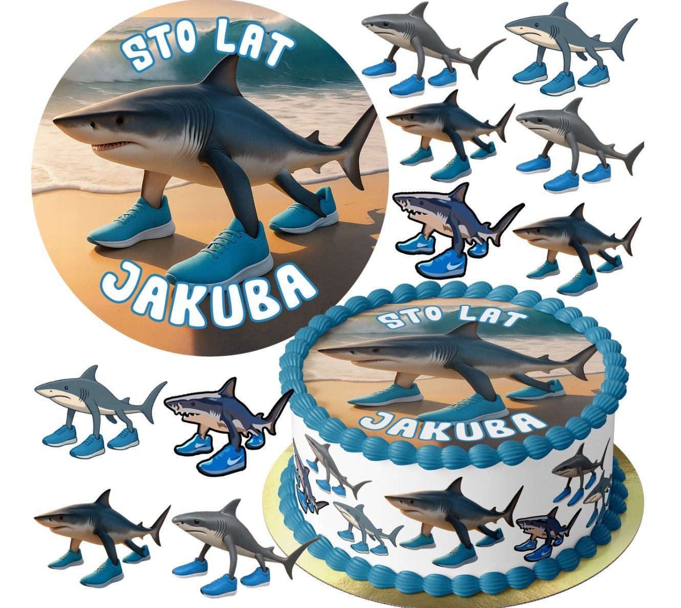Tralalero Tralala Essbar Brainrot Zuckermasse Tortenbild Tortenaufleger + 4 Muffin 01