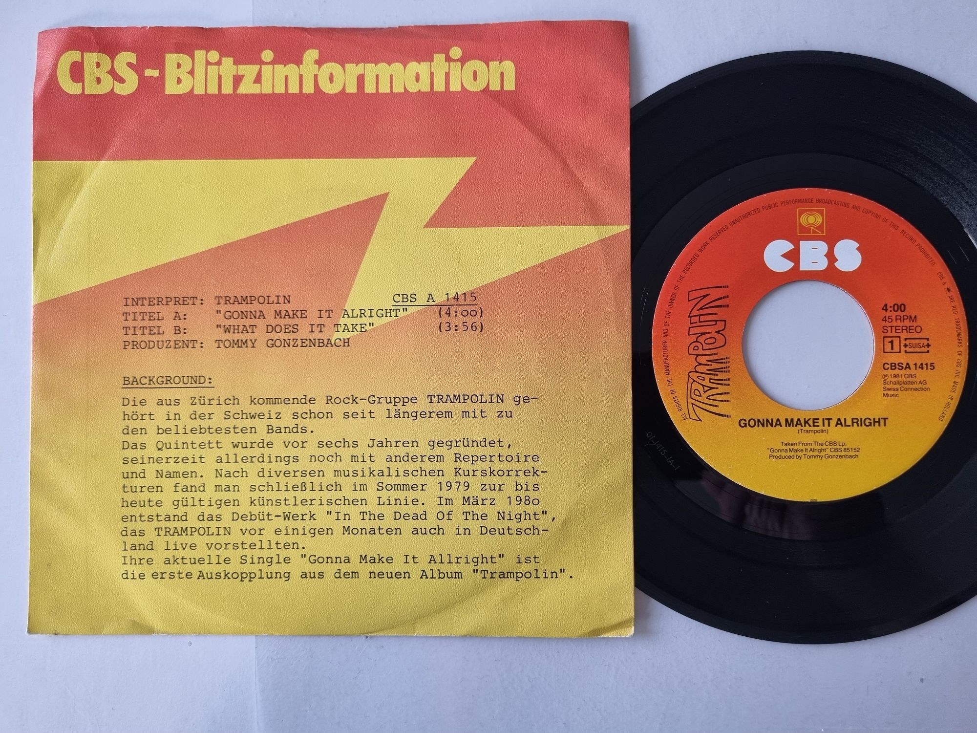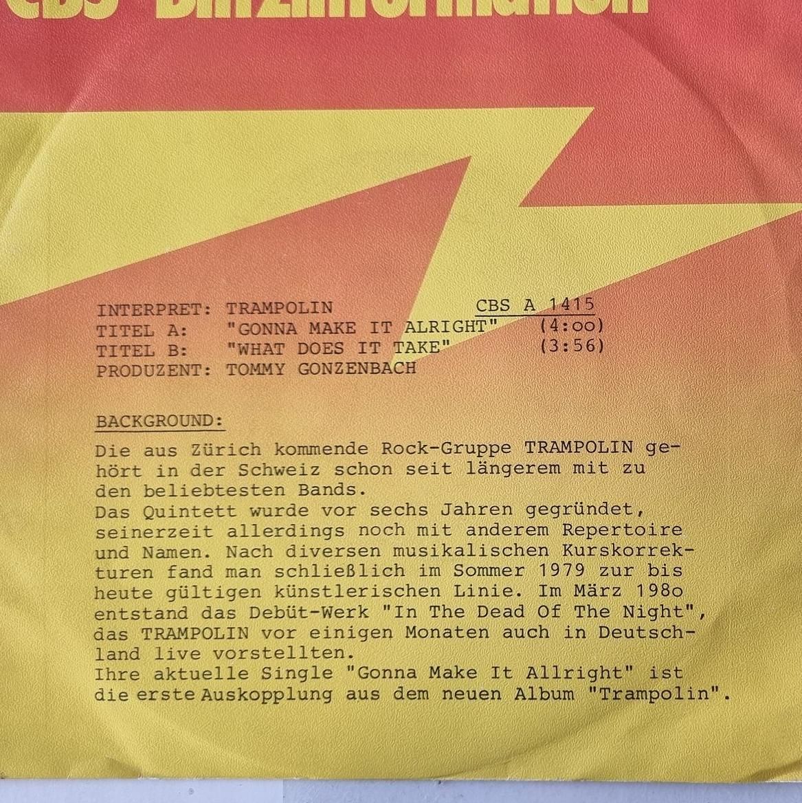 Trampolin - Gonna Make It Alright 7'' Vinyl Germany PROMO
