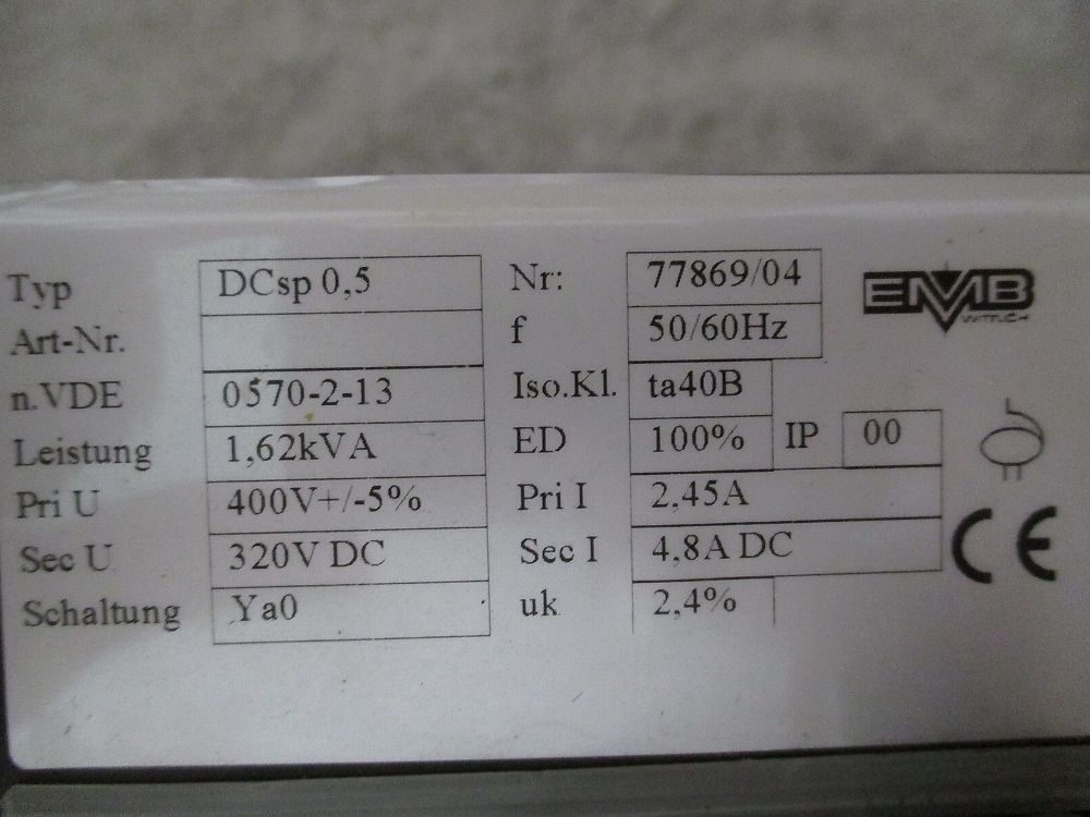 Transformator DCsp 0,5 Trafo pri.400 V + / - 5% sek.320 V DC 1620 VA T9/882