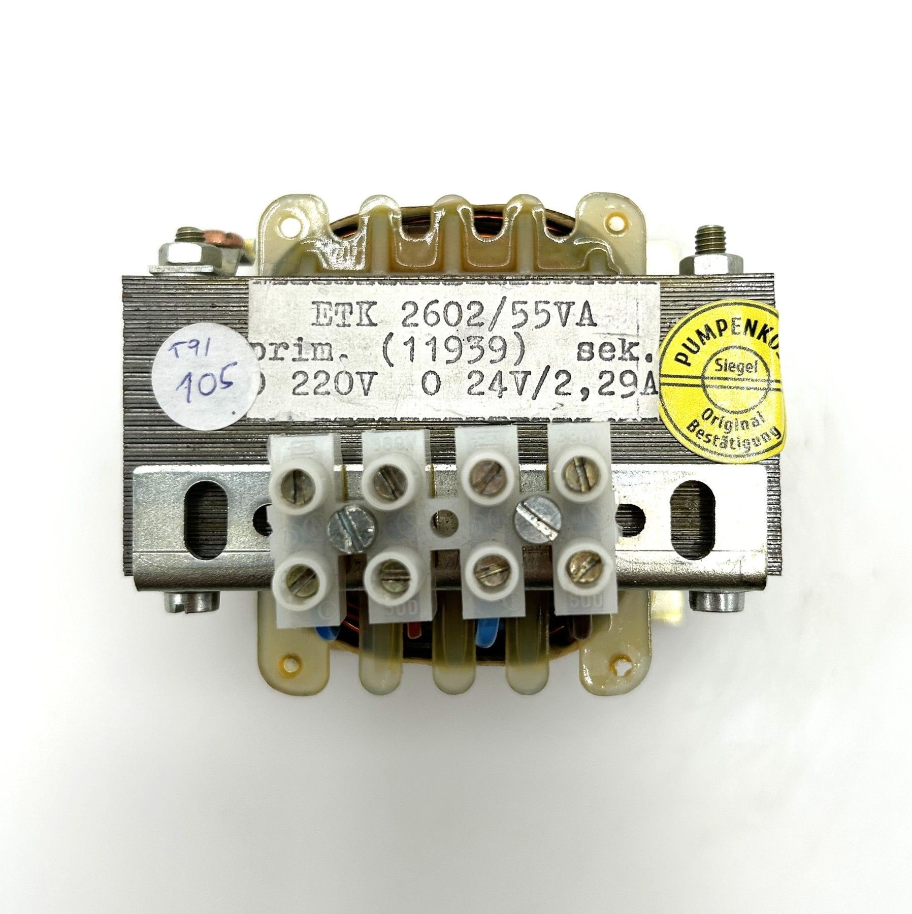 Trafo ETK 2602 55 VA prim. 220 V sec 24 V 2,29 A 55 VA Gewicht: 1,44 kg Maße LxBxH: 74x65x90 mm Sicherheits-, Funktionsprüfung und Isolationsmessung nach VDE durchgeführt Zustand: gebraucht (Top Zustand) Unsere Artikelnummer: T9 105 Sicherheitsprüfung nach VDE durchgeführt Neben der gesetzlichen Gew