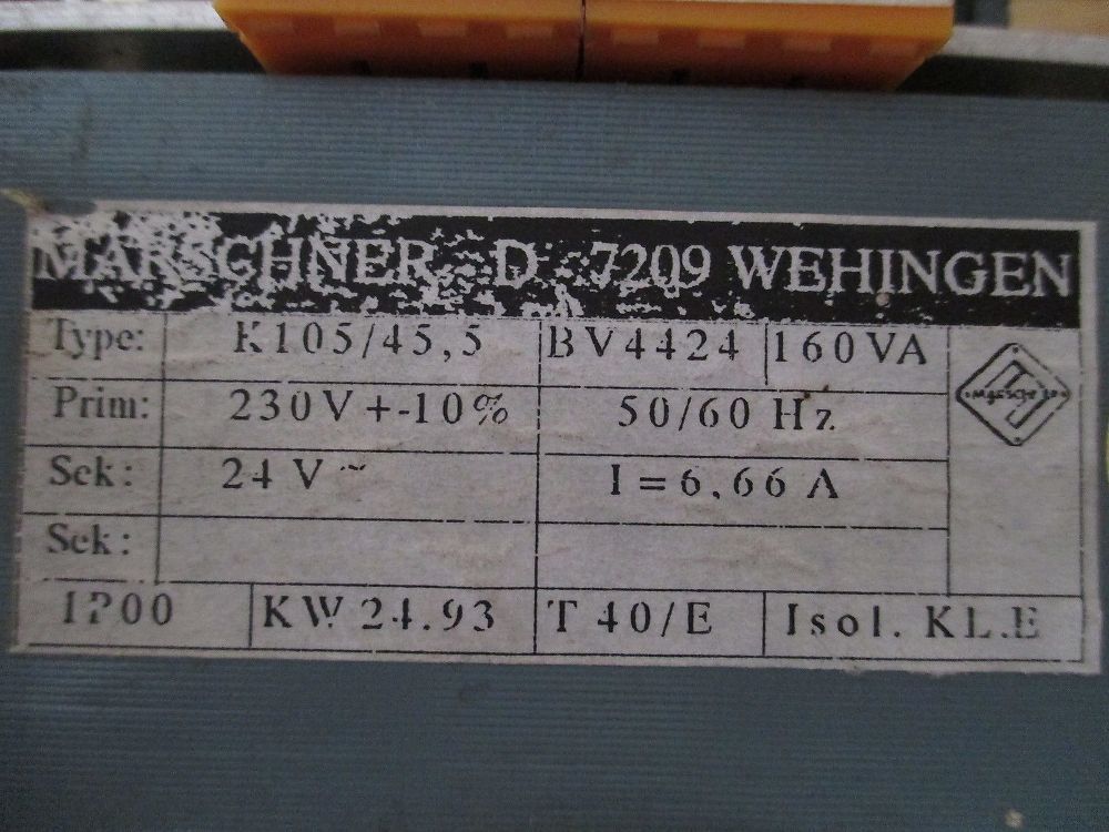 KOST-EX Elektrofachhandel Bestellnummer T 9 779 Marschner Transformator K 105 45,5 Trafo 160 VA pri. 230 V + - 10% sec. 24 V sec. 6,66 A Maße L x B x H: 105 x