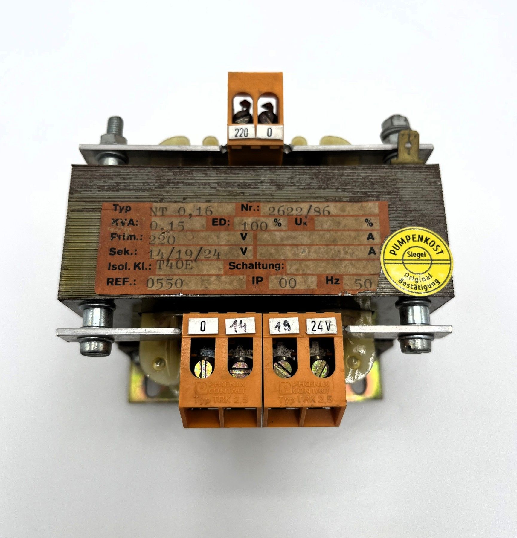 Transformator NT 0,16 Nr. 2622/86 pri. 220V sec. 14 19 24V 150VA T10/133