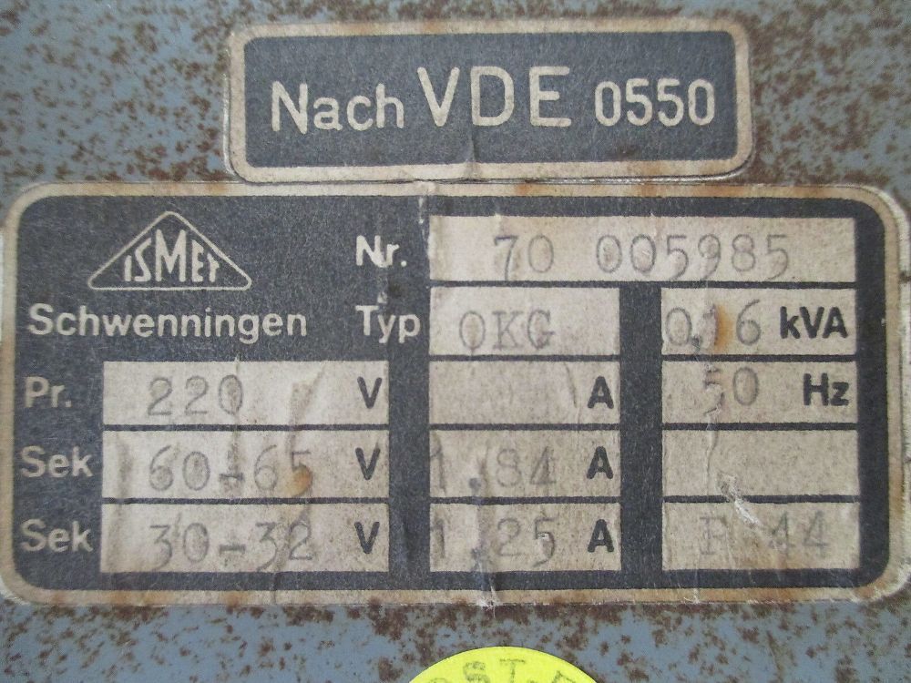 KOST-EX Elektrofachhandel Bestellnummer T 9 897 Ismet Transformator OKG Trafo 160 VA pri. 220 V sec.I 60 - 65 V sec.I 1,84 A sec.II 30 - 32 V sec.II 1,25 A Maß