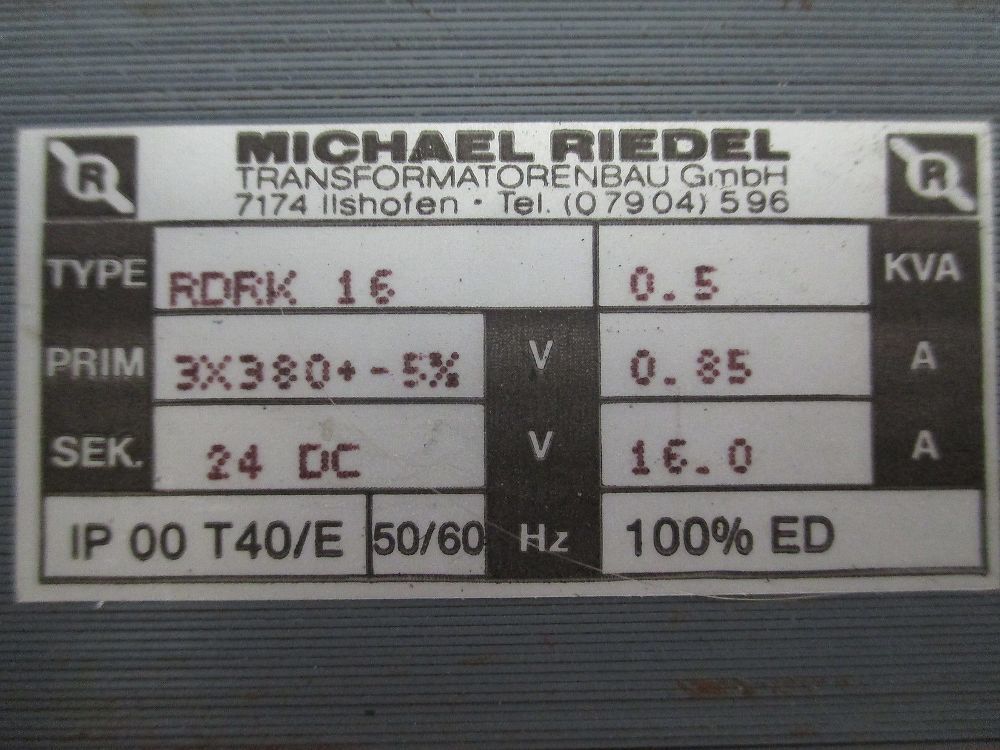 KOST-EX Elektrofachhandel Bestellnummer T 9 946 Michael Riedel Transformator RDRK 16 Trafo 500 VA pri. 3 x 380 V + - 5% pri. 0,85 A sec. 24 V DC sec. 16 A Maße