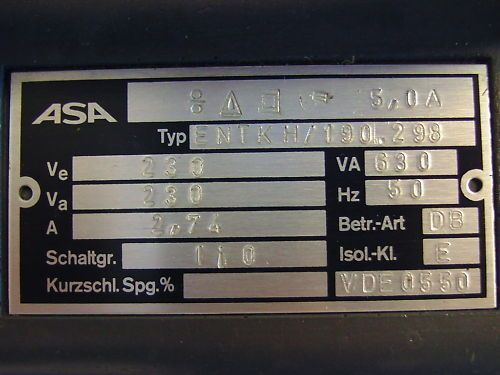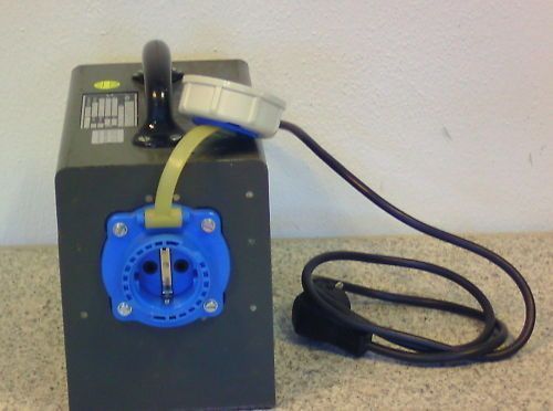 KOST-EX Elektrofachhandel Bestellnummer T11 05 Sicherheitstrenntrafo ASA Typ ENTKH 190.298 Gießharzausführung - höchste Sicherheit ausgerüstet mit einer wasserdichten normalen Schukosteckdose. 630 VA Prim. 230 V Sec. 230 V 2,74 A Gewicht: 15,58 kg Maße LxBxH: 220 x 230 x 170mm nach VDE 0550 Sicherhe