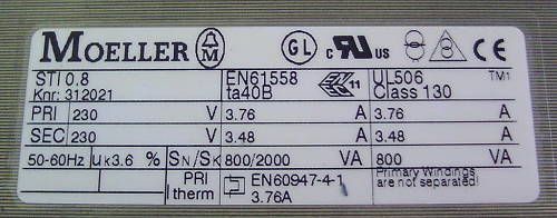 Transformator Trafo Moeller 230 - 230 V 800 VA T9/397