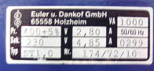 Transformator Trafo ST1,0 400V sec 230 V 1000 VA Bestnr.: T9/438