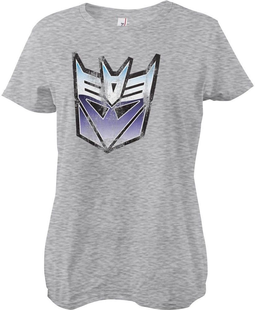 Transformers Distressed Decepticon Shield Girly Tee Damen T-Shirt Heathergrey