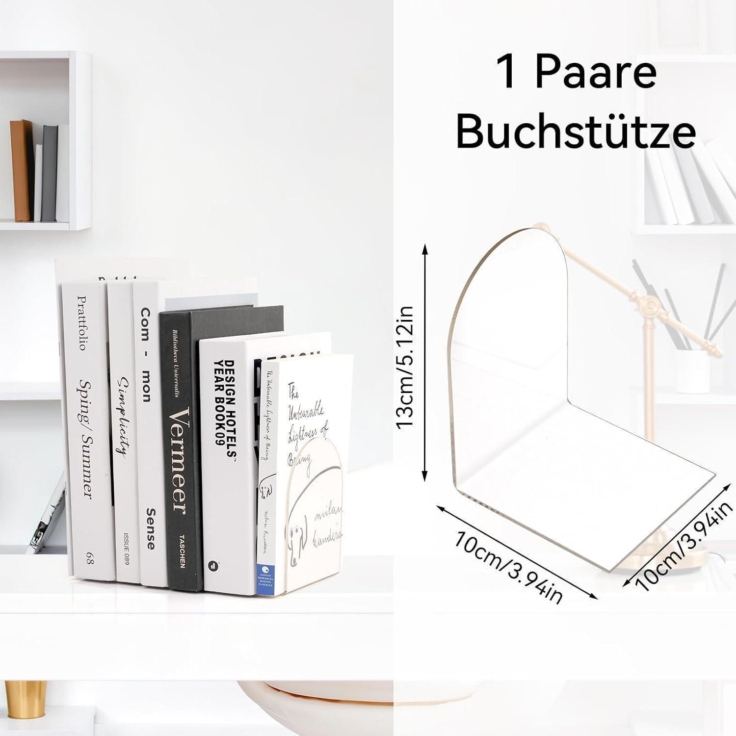 Transparente Acryl Buchstütze 2er Pack 80x70x130mm für Bücher Magazin DVD