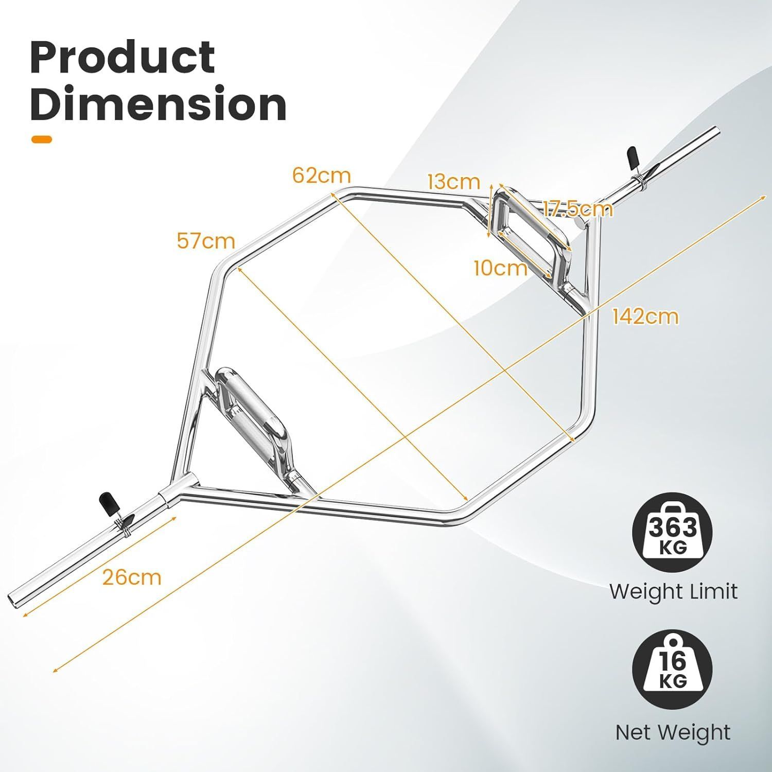 Trap Bar inkl. Verschlüssen für Kniebeugen, Kreuzheben, Schulterheben, bis 363 kg