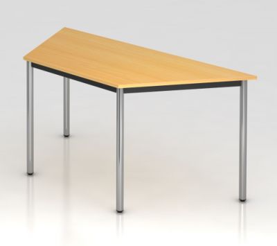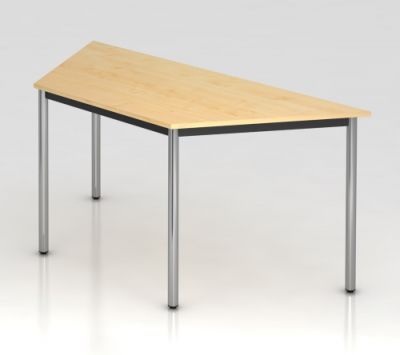 Trapeztisch Dortmund mit Füßen aus Rundrohr verchromt, lieferbares Dekor: Ahorn Buche oder Lichtgrau. Maße: 160 x 69 x 72 cm (B x T x H)