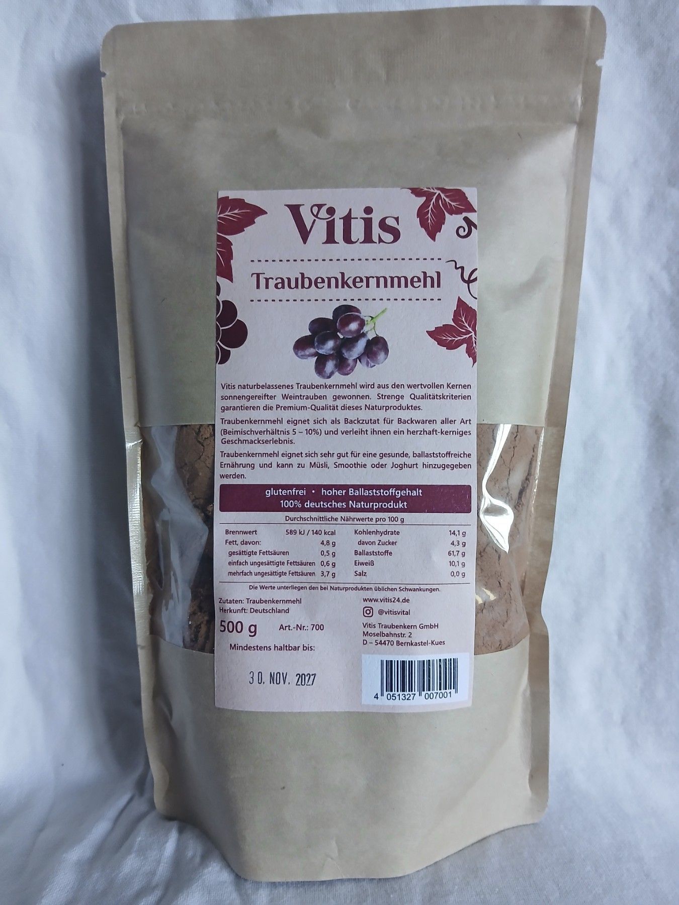 Traubenkernmehl – 500 g Traubenkernmehl besitzt einen überdurchschnittlich hohen Ballaststoffgehalt von 56,5%. Traubenkernmehl eignet sich nicht nur als eine gute Backzutat, es eignet sich auch super als Zugabe im Müsli, Joghurt oder Smoothie. Dadurch kann es Dich bei einer ausgewogenen Ernähr