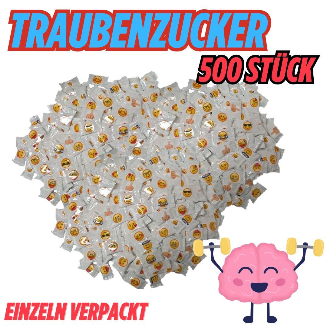 Traubenzucker mit Smylies, Emoji einzeln verpackt, 500 Stück im Beutel | Süßware