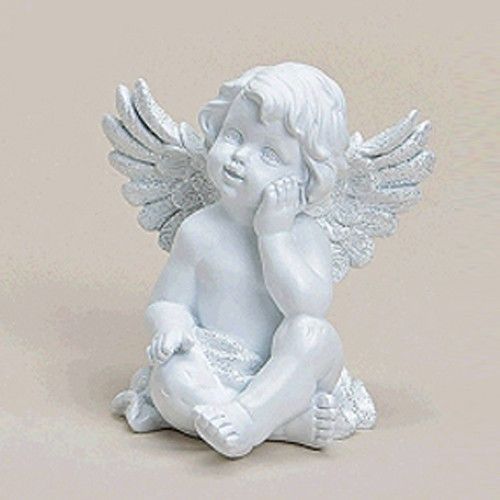 Wurm Trauer Engel mit Flügel weiss weiß Glitzer Friedhof Grab beten Deko NEU