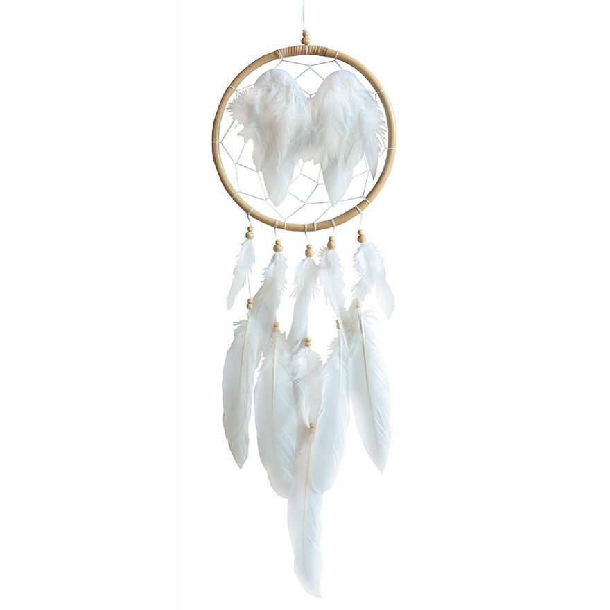 Saraswati Traumfänger ANGEL WINGS Rattan natur mit weissen Engelsfedern 20 x 60 cm