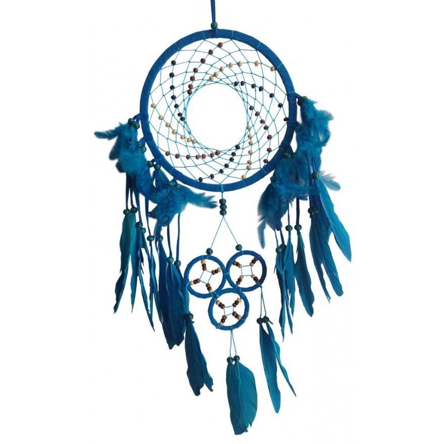 Saraswati Traumfänger COSMIC SWIRL Leder 4 Ringe Federn blau-türkis 22 x 60 cm Dreamcatcher