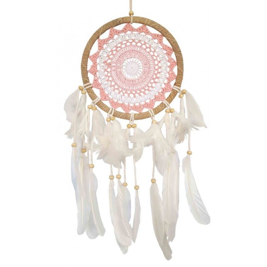 Saraswati Traumfänger PINK Sisal mit gewebtem Netz + Federn 22 x 60 cm Dreamcatcher