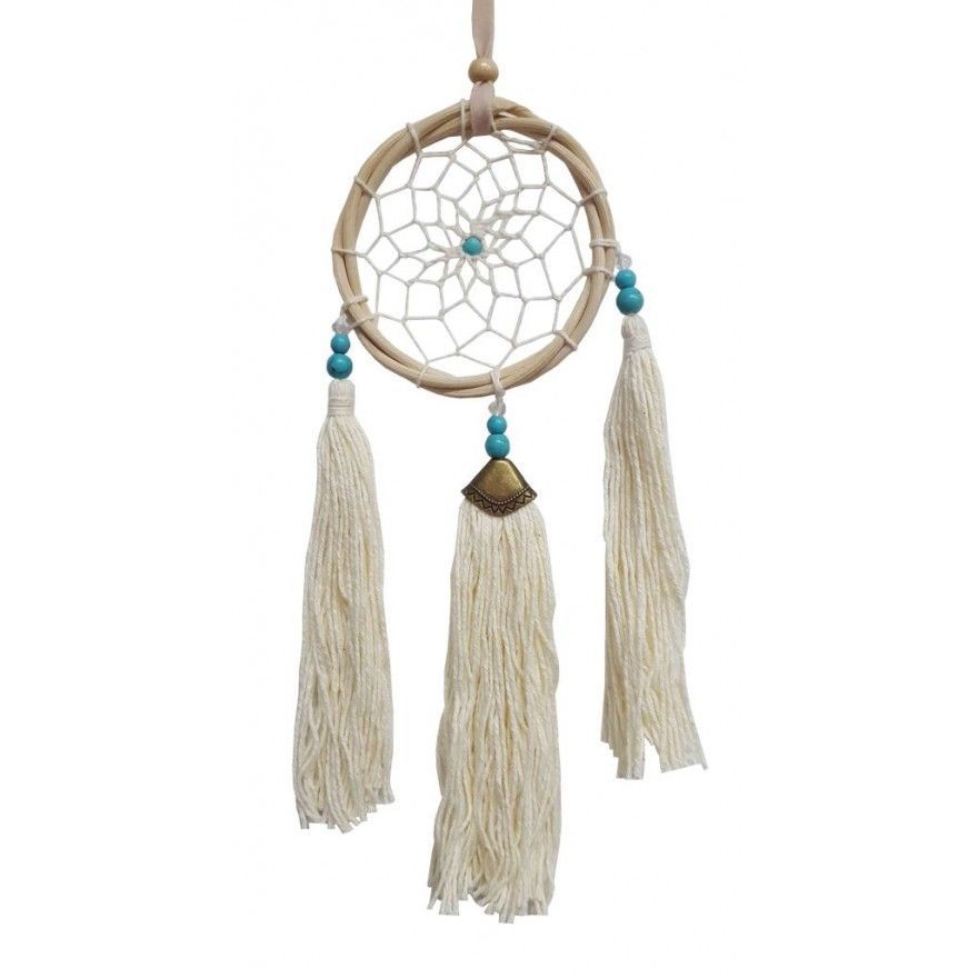 Saraswati Traumfänger Rattan natur Howlith Perlen weißen Quasten 8 x 30 cm Dreamcatcher