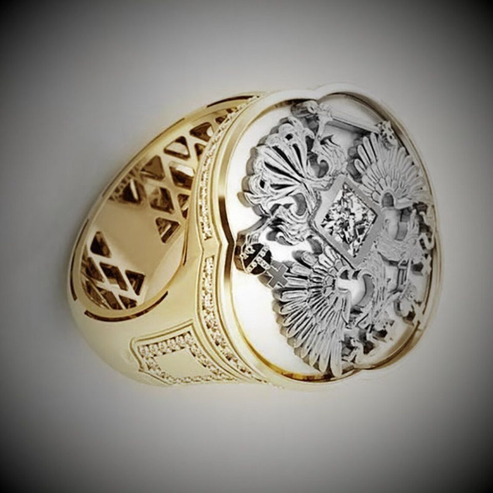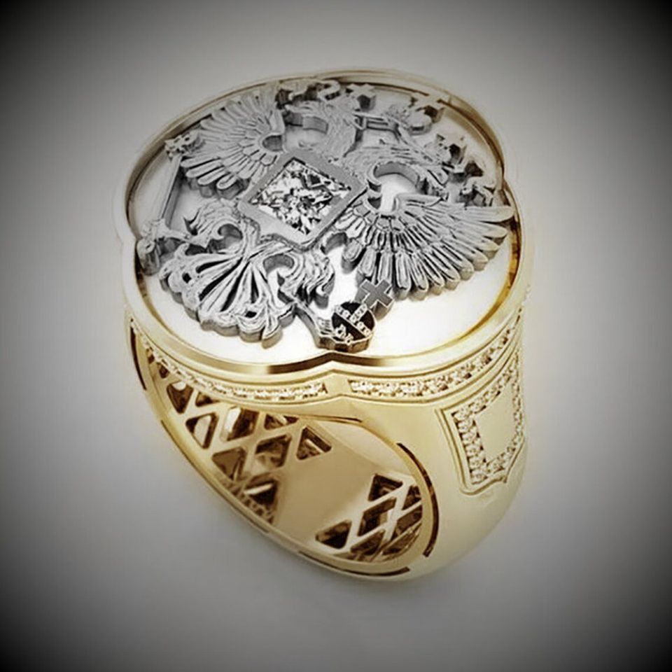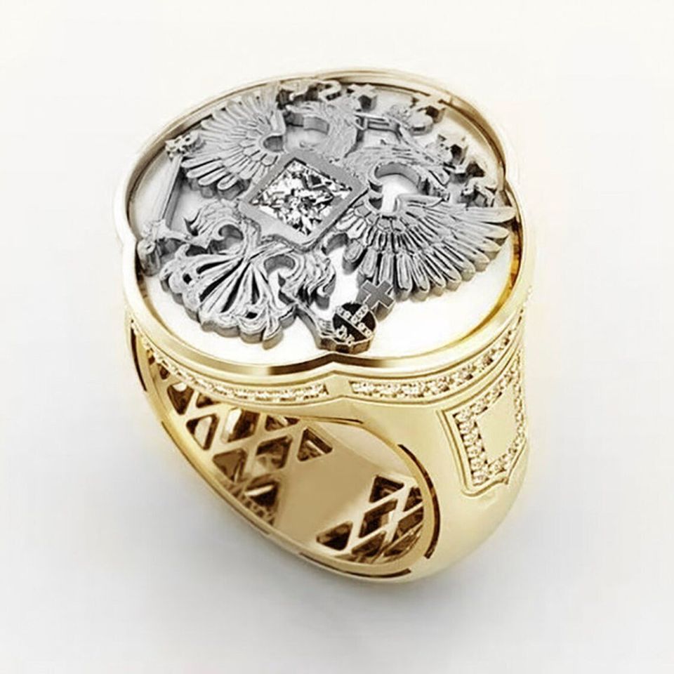 Traumhafter Doppel Adler Herren Siegel Ring (CM633)