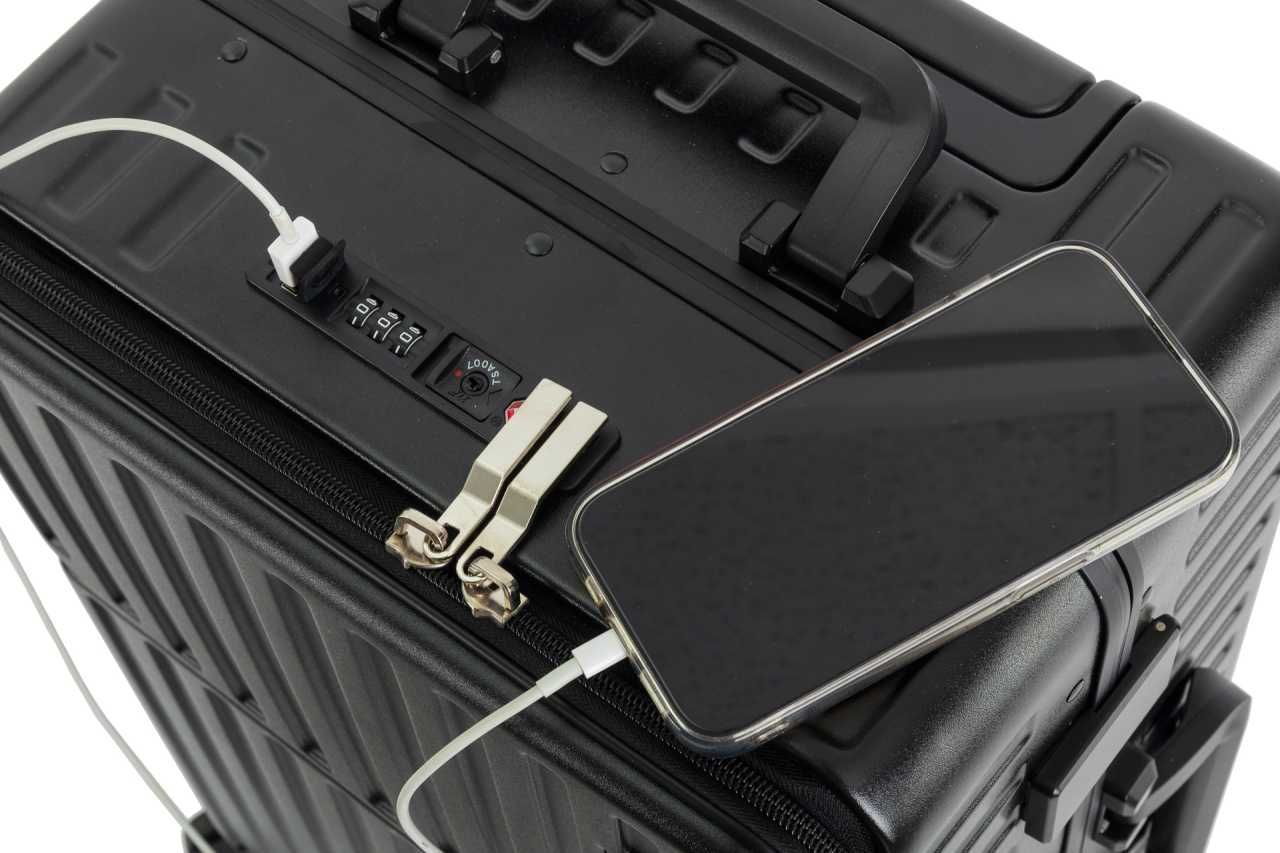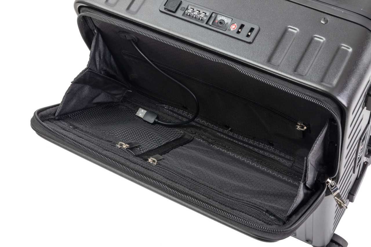 Travelhouse Handgepäck-Koffer Roma: 4 Rollen USB-Port Getränkehalter TSA Hartschale