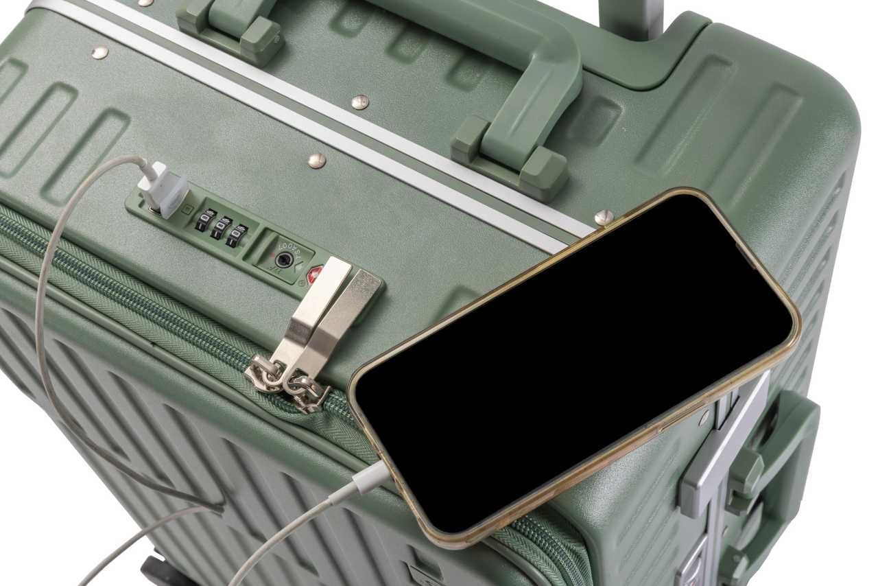 Travelhouse Handgepäck-Koffer Roma: 4 Rollen USB-Port Getränkehalter TSA Hartschale