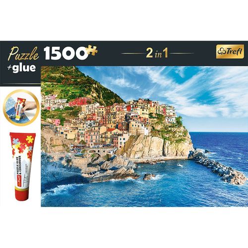 TREFL 2in1 Puzzleset Manarola, Ligurien, Italien 1500 Teile mit Kleber