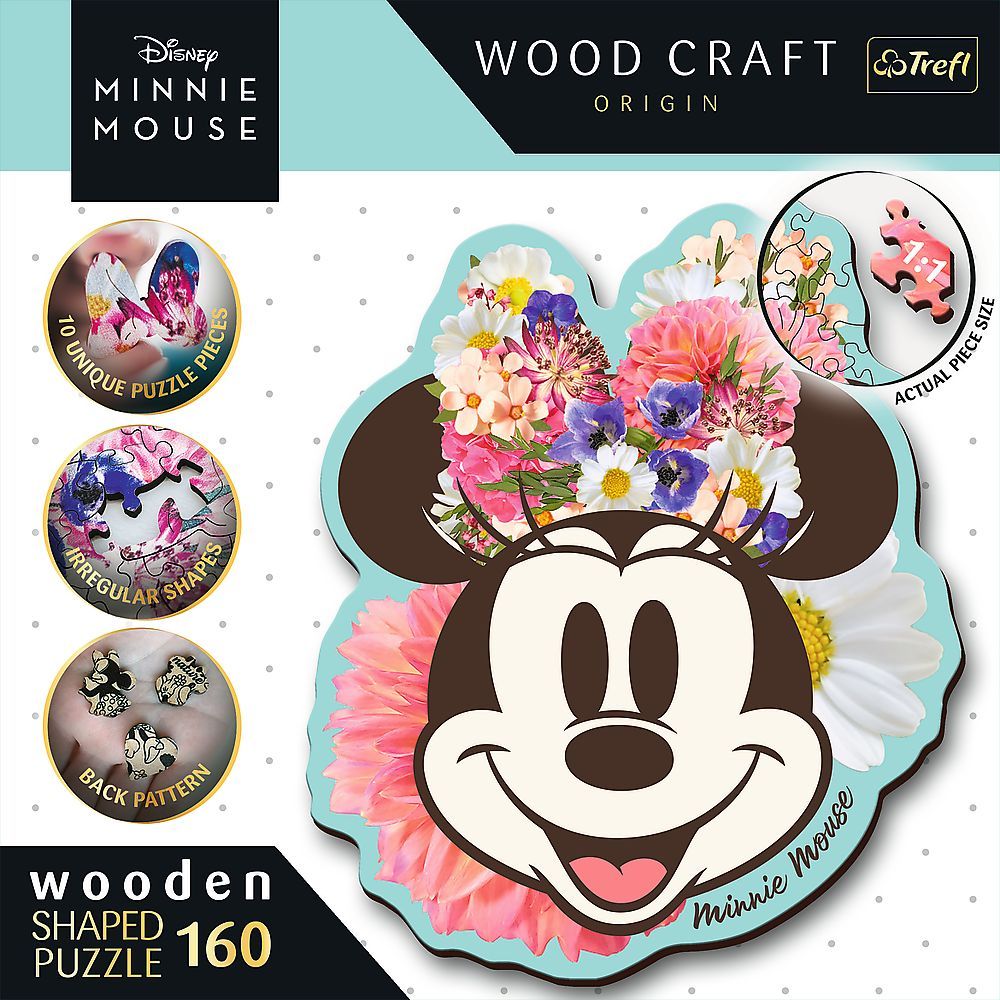 Trefl, Wood Craft, Stylische Minnie Maus, 160 Teile Holzpuzzle