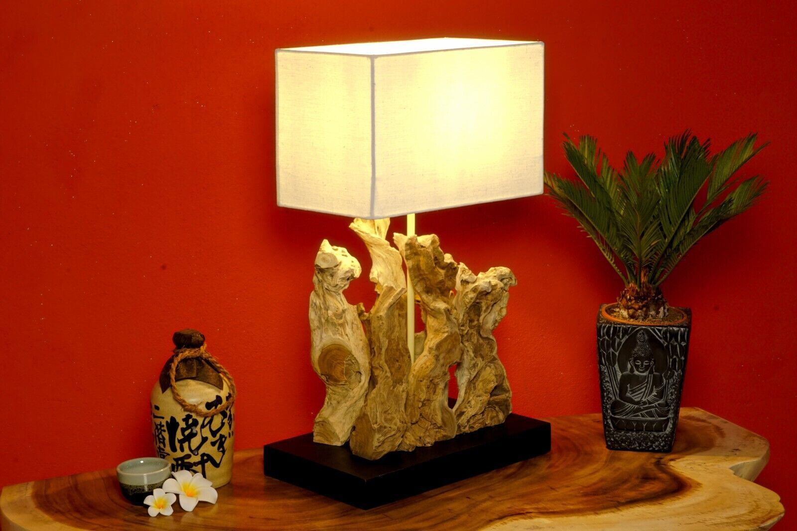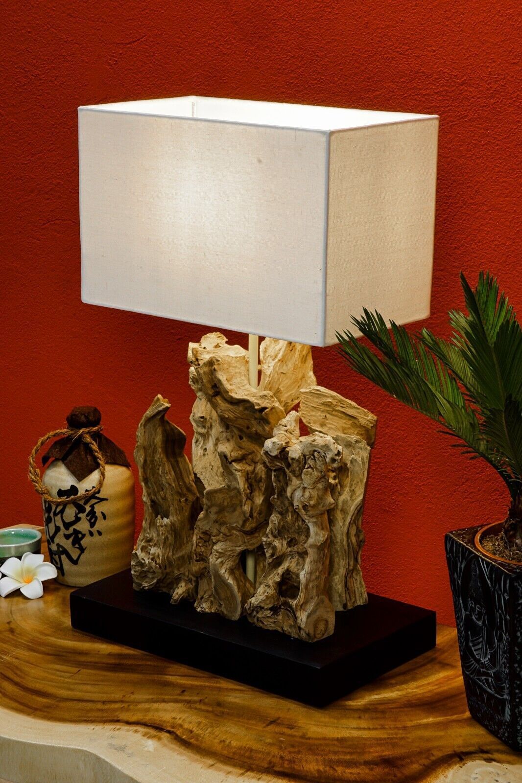 Treibholz Tischlampe Wurzel Lampenschirm Leuchte elegant rustikal natur beige