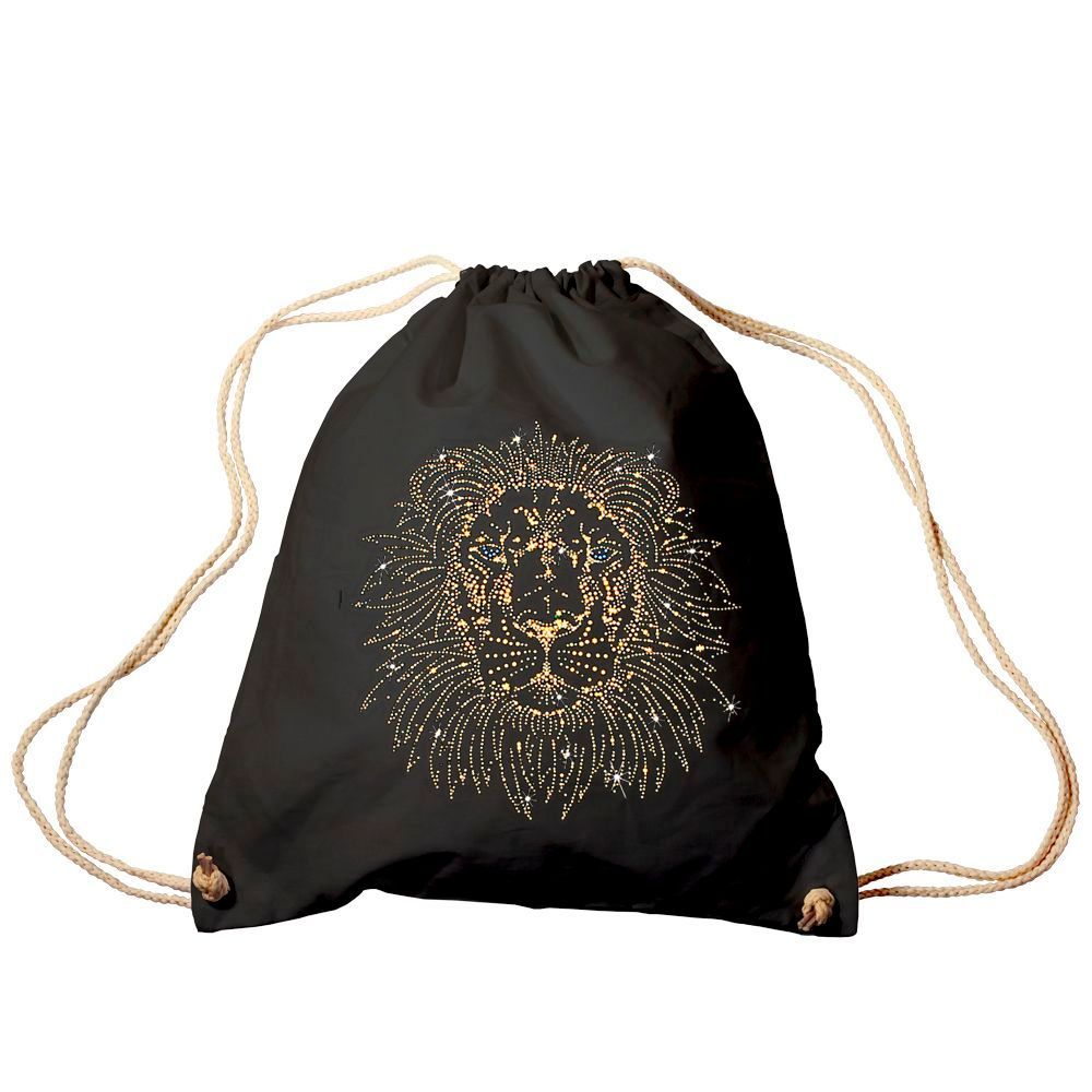 Trend-Bag Turnbeutel Sporttasche Rucksack mit Glitzer-Strass-Veredelung Löwe Lion -