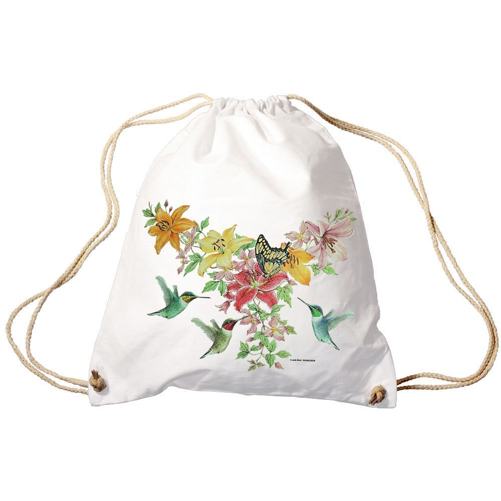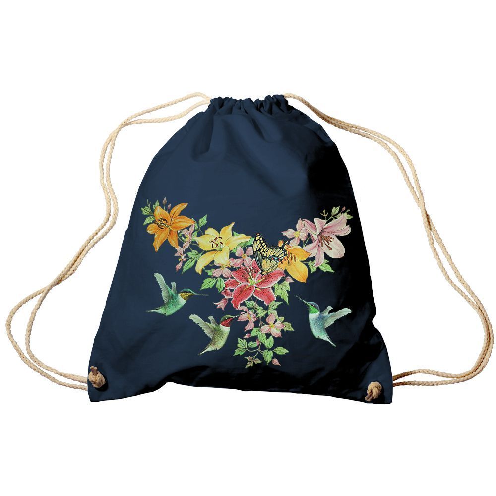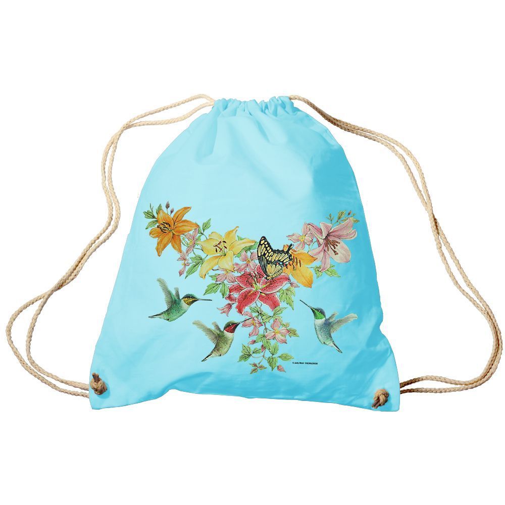 Trend-Bag Turnbeutel Sporttasche Rucksack mit Print -Blumen und Schmetterlinge - TB09