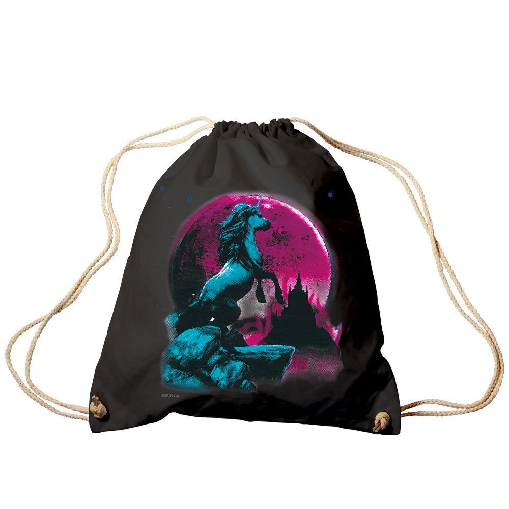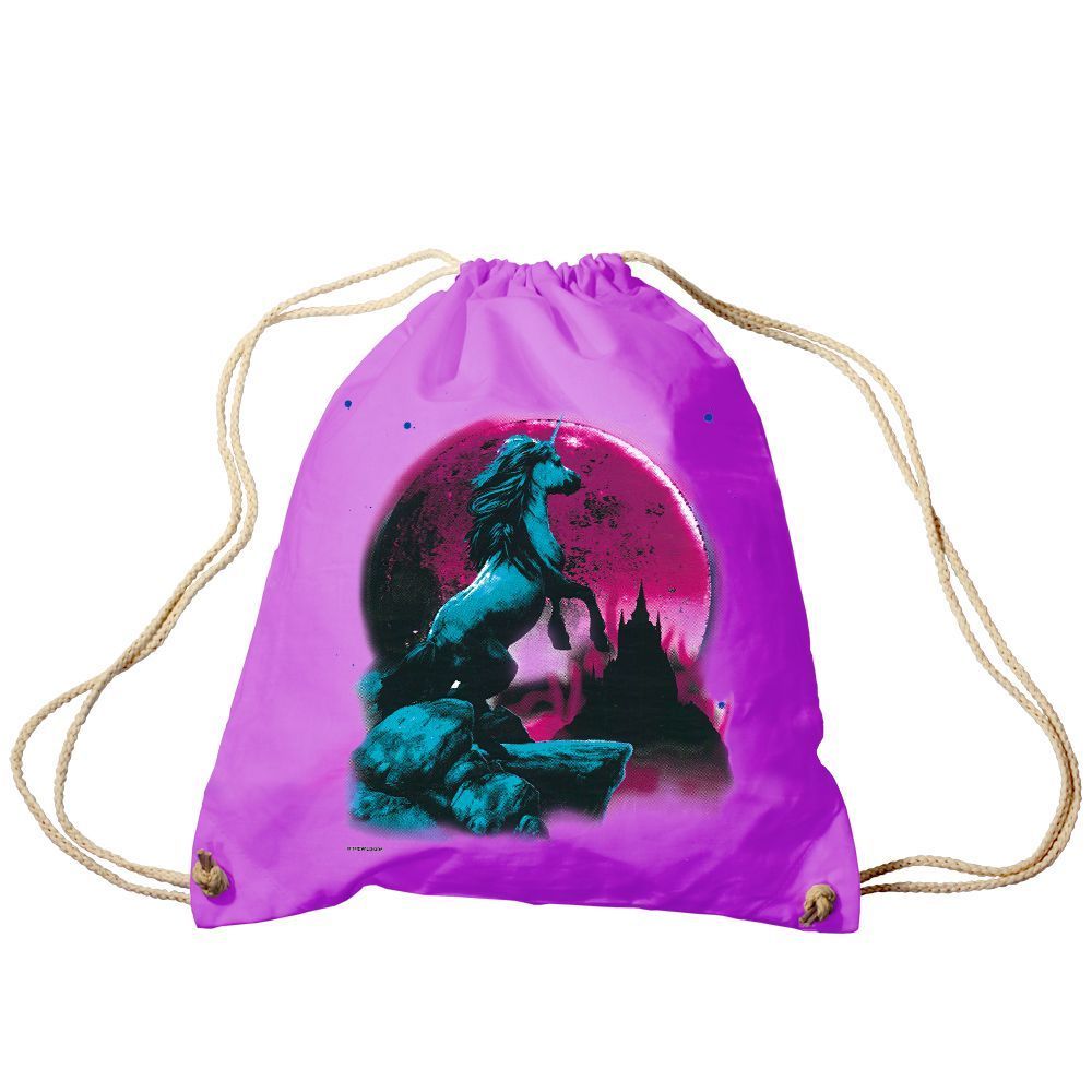 Trend-Bag Turnbeutel Sporttasche Rucksack mit Print - Einhorn bei Mondschein - TB1266
